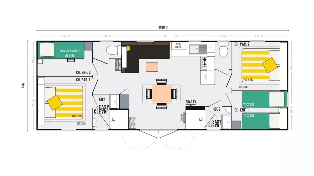 Côté services, tout est prévu pour un séjour agréable : un snack/bar ouvert en haute saison, dépôt de pain frais, épicerie avec produits de première nécessité, et même des barbecues collectifs pour partager de bons moments en famille.