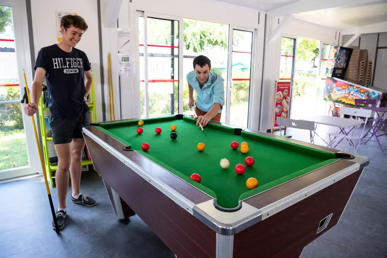 Parce que les vacances sont synonymes d'amusement, le camping met à votre disposition des équipements de loisirs : salle de jeux (billard, babyfoot, flipper, hockey), table de ping-pong, boulodrome