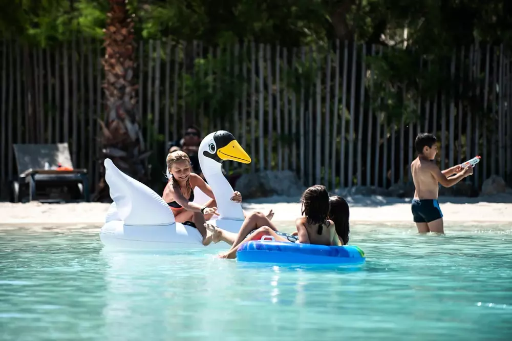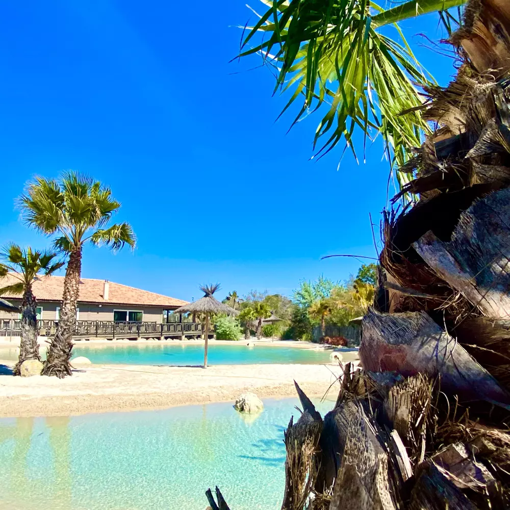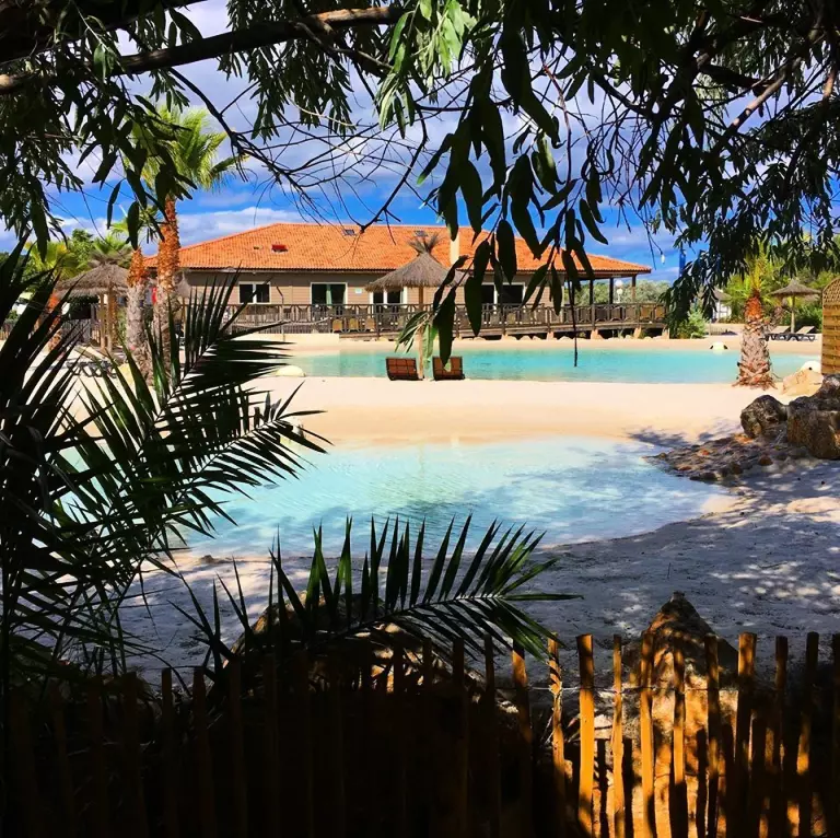 Venez passer un moment de détente en famille autour de l'espace aquatique de 2000m² et ses 2 lagons de baignades. Véritable coin de paradis au cœur du camping. Découvrez la plage privée artificielle bordée de sable blanc, de parasols et de transat sur plus de 2000 m2.