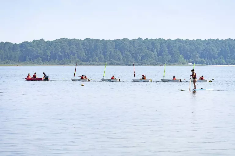 Au camping lac de Sanguinet, c'est baignade à volonté ! En plus un espace aquatique avec piscine chauffée et pataugeoire, petits et grands profitent de l'accès direct au lac de Sanguinet dont la température atteint les 28° en été. Ses eaux calmes et peu profondes sont parfaites pour la baignade en famille ! Et pour les fans de glisse, cap sur les longues plages de Biscarrosse à 20 min du camping !