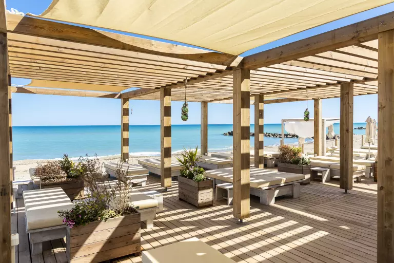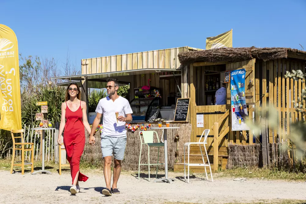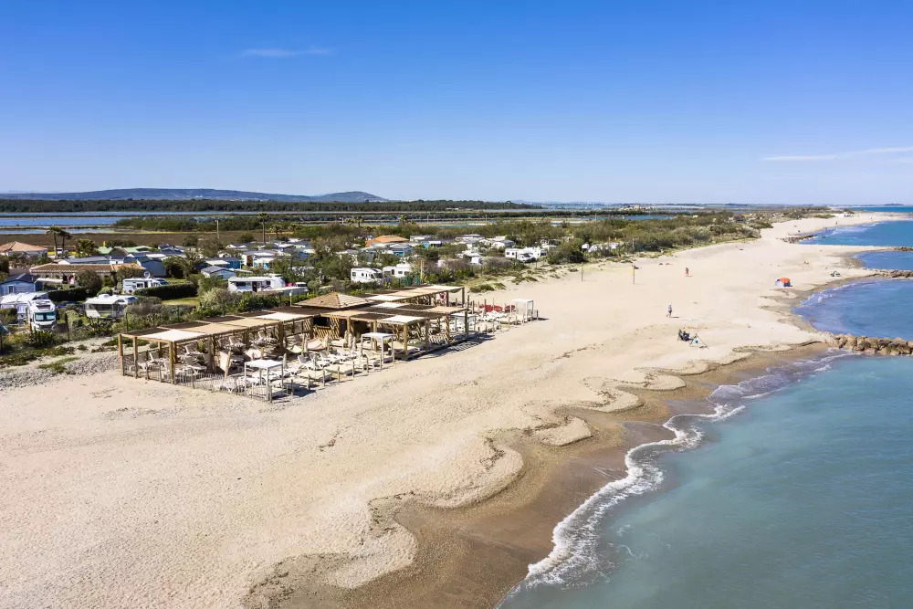 Le camping dispose de sa première plage privée "Le Tam Tam Beach" avec parasols, transats et hamacs sur une belle plage de sable fin.