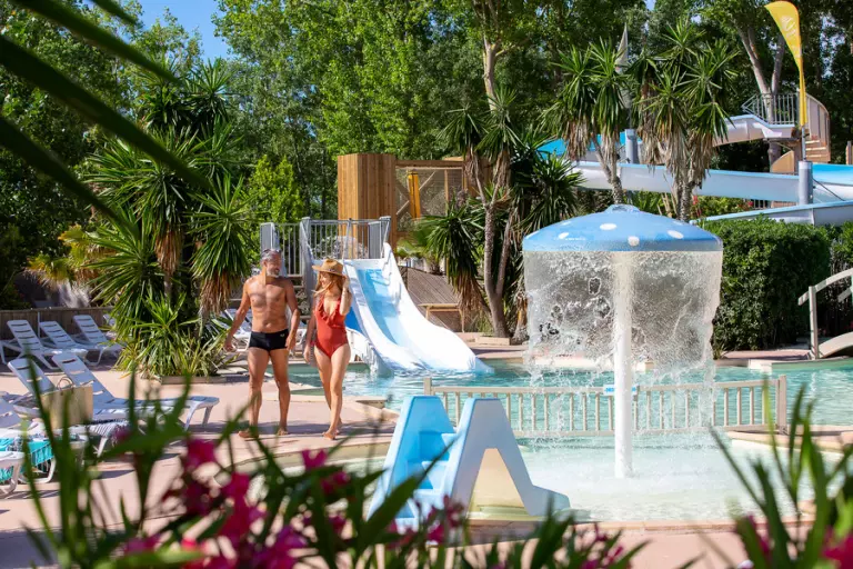 Sur place, vous pourrez profiter d'un parc aquatique de 500m² avec piscine à vagues chauffée, pataugeoire, toboggan, pentaglisses et jets d'eau pour le plaisir des petits comme des grands.