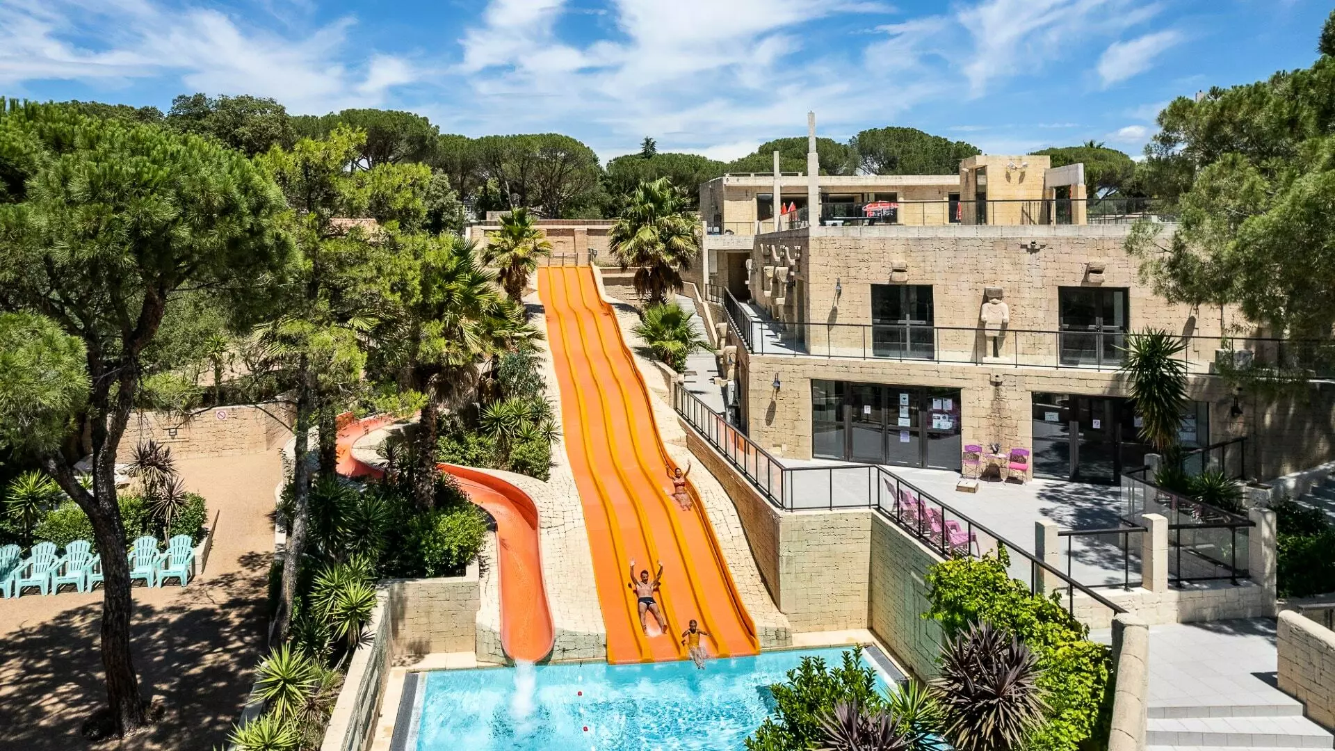 Le parc aquatique du camping les Cigales comprend de nombreux bassins, il est composé de : toboggans géants qui dévalent une pyramide maya : 4 pistes de toboggans de 35 m et 1 piste de 75 m en boucle, un lagon de 400 m² avec une immense cascade, un lagon pataugeoire (chauffé - accessible PMR), une piscine traditionnelle, une rivière à courant rapide de 120 m, un bassin thalasso de 110 m² entouré de statues maya crachant de l'eau, un bassin à bulles de 40 places (chauffé), un "Jardin Aquatique" comprenant 2 grands espaces pour les enfants avec de nombreux jeux ludiques (la pataugeoire enfants est chauffée).