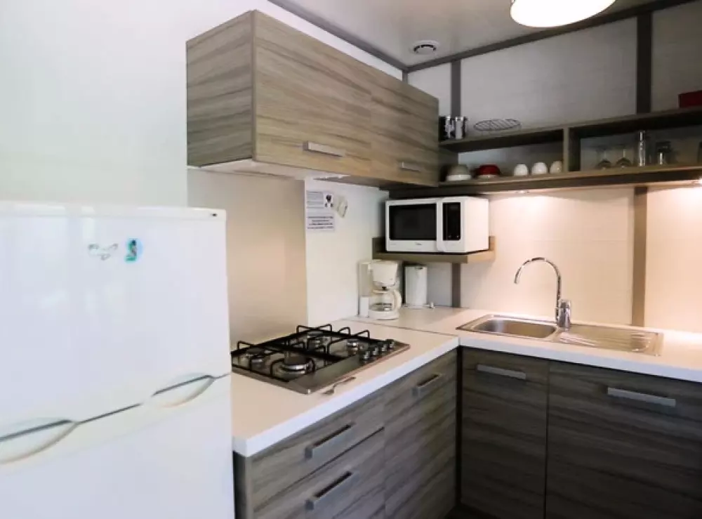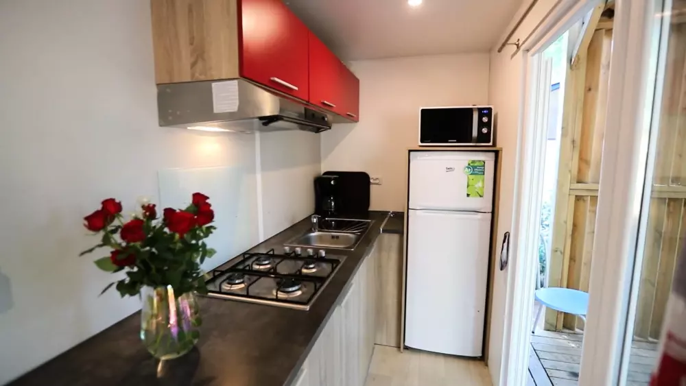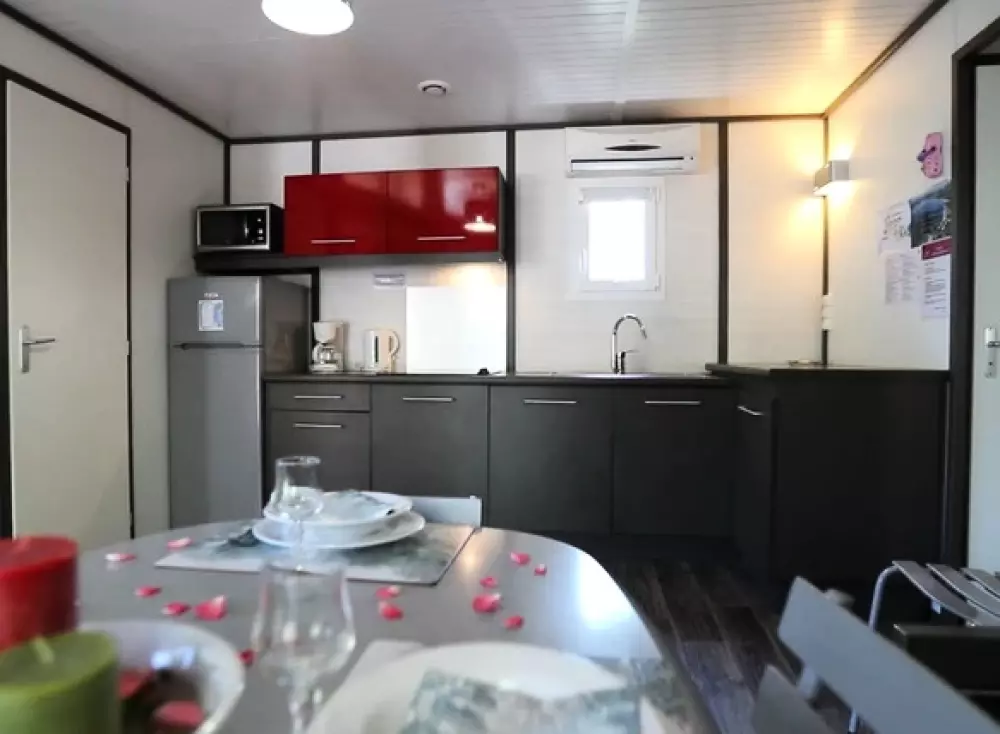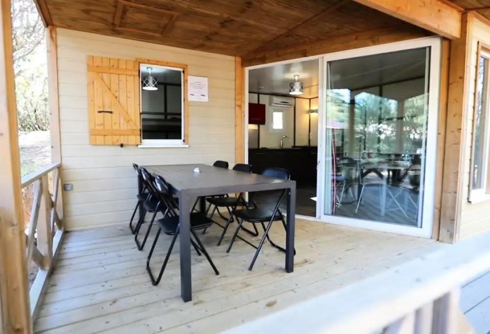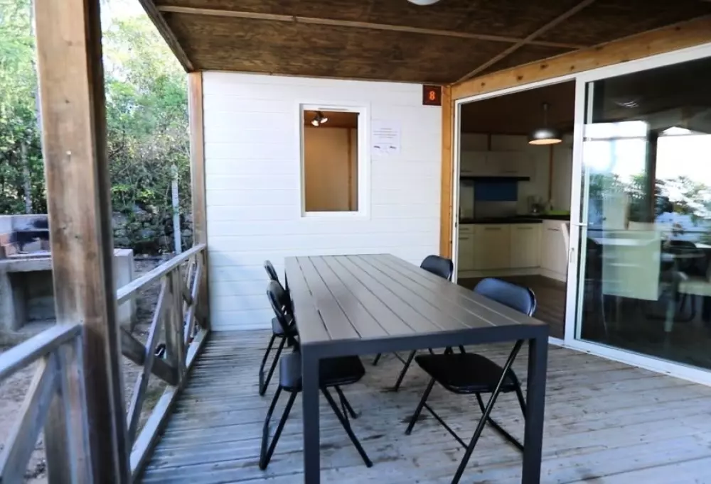 - des chalets entièrement équipés, avec terrasse, barbecue et terrain privatif, pouvant accueillir jusqu'à 6 personnes ;