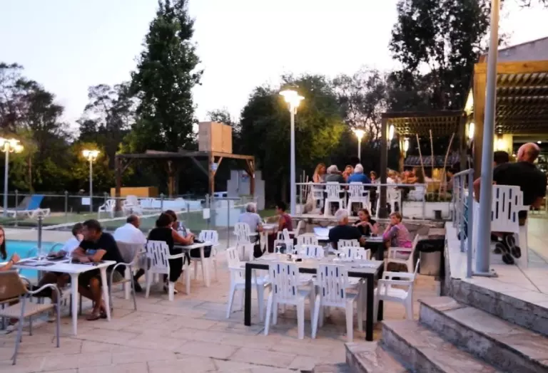 Autour de la piscine, le bar-restaurant-pizzeria du camping vous accueille en outre de juin à septembre tous les soirs et vous propose grillades, pizze, pâtes, salades et spécialités corses. Des soirées chansons corses sont organisées pendant l'été. Le matin un petit-déjeuner est servi et le midi une offre de snacking est disponible.