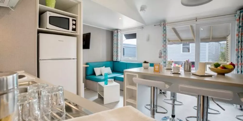 Sur place, tous les services d'un camping haut de gamme : épicerie avec pain, viennoiseries et journaux, produits frais, fruits et légumes et produits du terroir Breton. Côté restauration, le bar restaurant vous propose des moules de bouchots et des pizzas maison, à déguster sur place, face à la piscine ou à emporter. Côté sport : terrain de tennis avec équipement fourni, terrain multisports… toutes ces activités sont incluses dans le tarif de vos vacances. Côté animation : un programme haut en couleurs est proposé pendant les vacances d'été. Ateliers loisir créatif, cuisine, initiation à la pêche à pied, sports d'équipe, … Tous les soirs une animation est proposée.