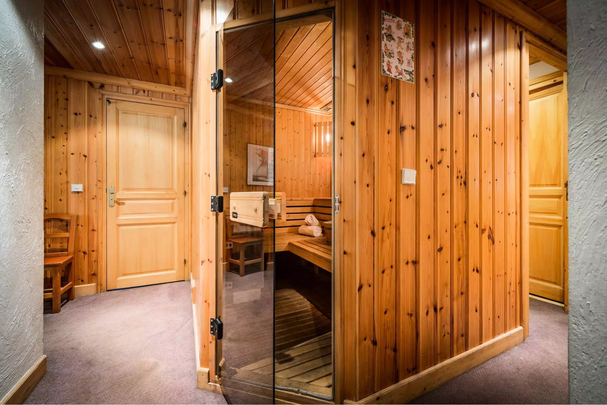 Si vous souhaitez vous détendre, vous pourrez profiter d'un moment de calme dans le sauna du chalet. Découvrez aussi l'annexe au sous-sol, un espace dédié au bien-être avec son hammam et deux douches. Vous y trouverez aussi une salle de billard, pour des soirées plus animées avec vos proches et où vos enfants pourront jouer ensemble.
