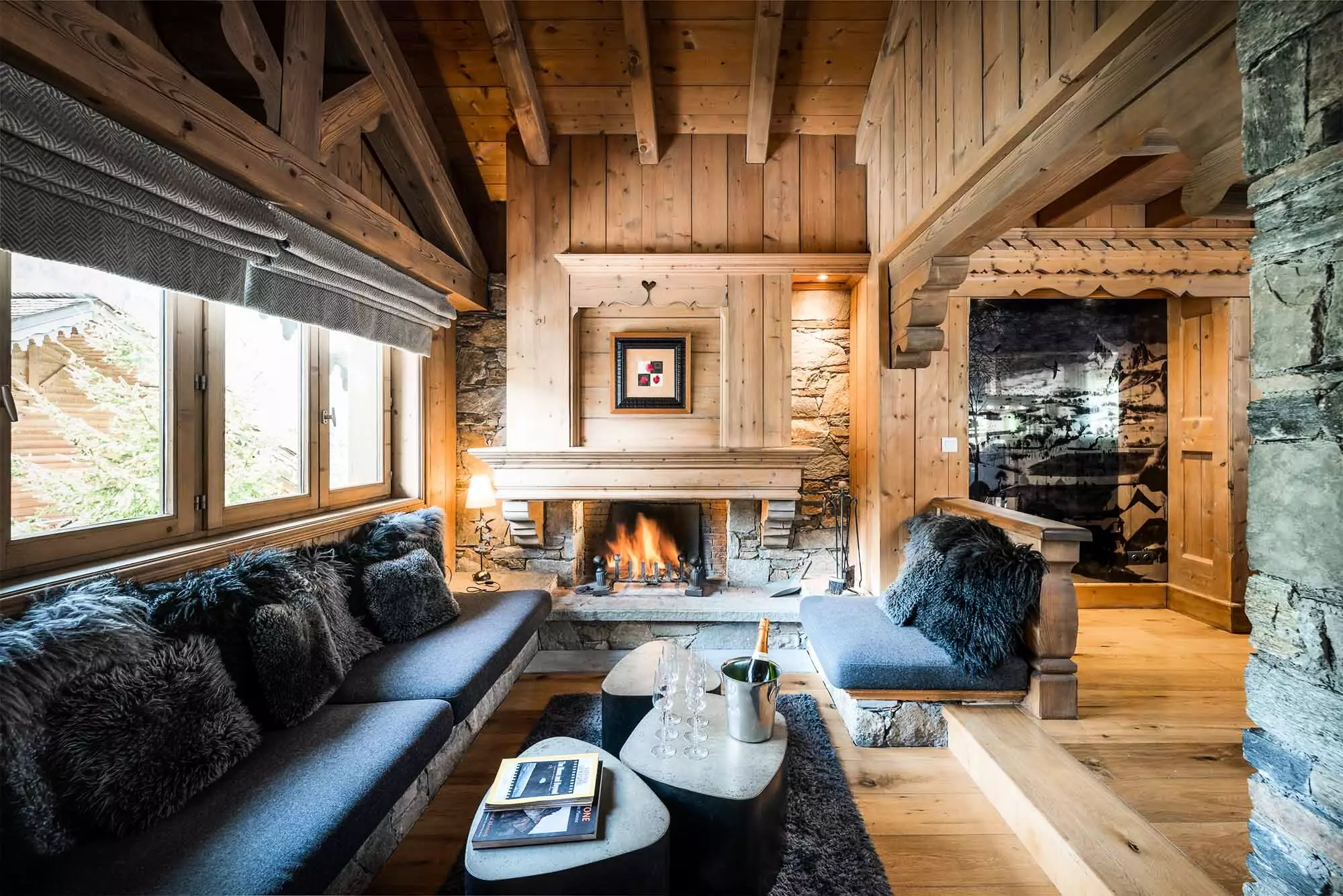 Au deuxième étage, vous trouverez un espace de vie élégamment décoré, disposant d'une splendide cheminée et une salle à manger avec assez d'espace pour accueillir les onze invités. De l'extérieur, vous aurez une vue majestueuse sur Méribel et les montagnes environnantes, où vous pourrez profiter de la terrasse pour prendre un verre quand il fait beau.