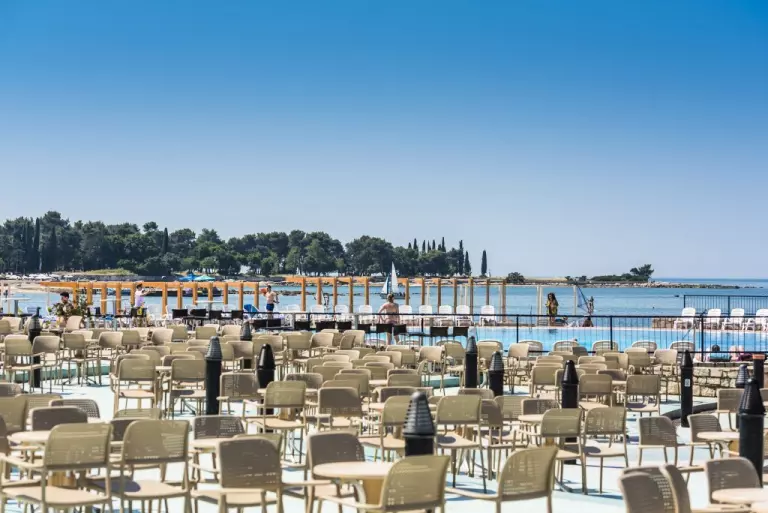Commencez votre journée par un cours de yoga ou d'aqua-aérobic, et restez actif jusqu'au coucher du soleil : natation, Zumba, Pilates, vélo, pédalo, école de plongée, parachute ascensionnel. Profitez d'un dîner accompagné d'un magnifique coucher de soleil, puis rendez-vous à Umag pour faire la fête (situé à 10 km, soit une promenade de 40 minutes le long du front de mer, ou prenez le train touristique).