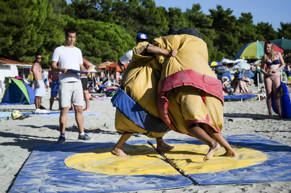 Une atmosphère animée imprègne le camping, offrant des terrasses de cafés propices à la détente. Vous trouverez un supermarché à disposition, ainsi qu'une variété de restaurants, bars, étals de fruits et légumes, boutiques de souvenirs et un kiosque à journaux. Les enfants peuvent profiter d'une aire de jeux, de mini-voitures et le long de la plage, il y a même un manège à poneys. Les activités pour les plus âgés ne manquent pas, avec des possibilités telles que la planche à voile, le tennis, la plongée sous-marine et la natation. Chaque soir, la scène de la plage s'anime avec des spectacles en direct ou de la musique.