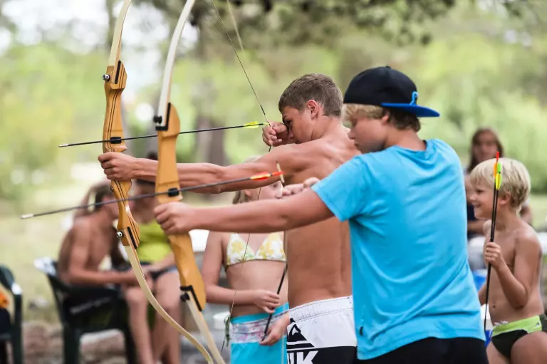 Autour de la piscine, vous trouverez un glacier, un bar à cocktails et un snack-bar pour satisfaire vos envies gourmandes. De plus, diverses activités sportives, y compris l'aquagym, sont disponibles sur le camping.