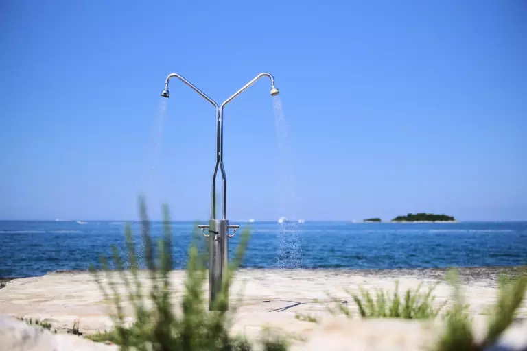 Les attraits incluent une piscine avec vue sur la mer, des plages carrelées équipées de parasols et de chaises longues (moyennant un supplément), ainsi qu'un petit port avec des places d'amarrage. Le camping tire pleinement parti de sa situation privilégiée en offrant des activités telles que la baignade en mer, la location de petits bateaux, et même un parcours d'obstacles gonflable en pleine mer pour les amateurs d'aventures aquatiques.