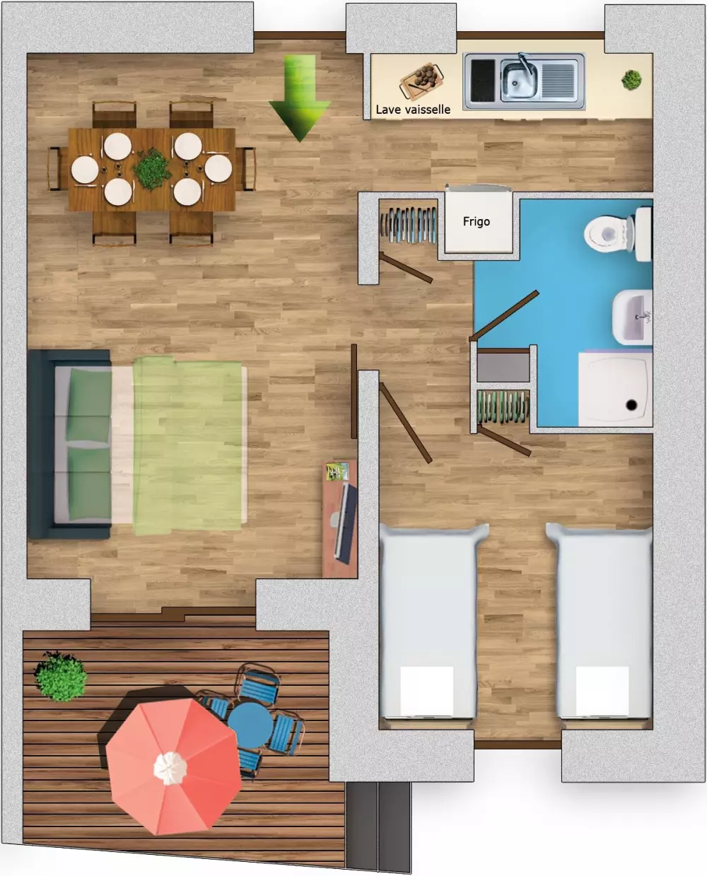 - Ménage fin de séjour : 59€, hors vaisselle