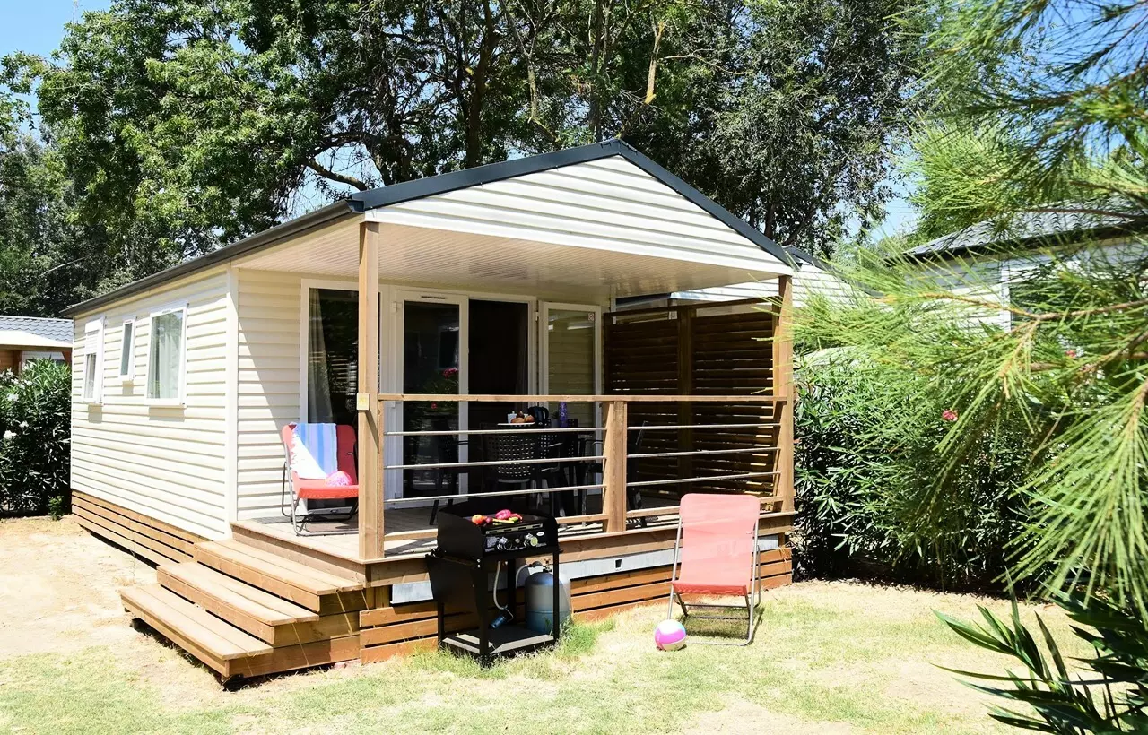 Sur un domaine de 50 hectares, le Château de la Forêt vous accueille pour un séjour en mobil home climatisé. Confortablement équipés, les intérieurs se composent d'un coin salon, d'un coin cuisine, de chambres et salle de bain avec douche. Une terrasse couverte complète le logement avec salon de jardin et plancha.