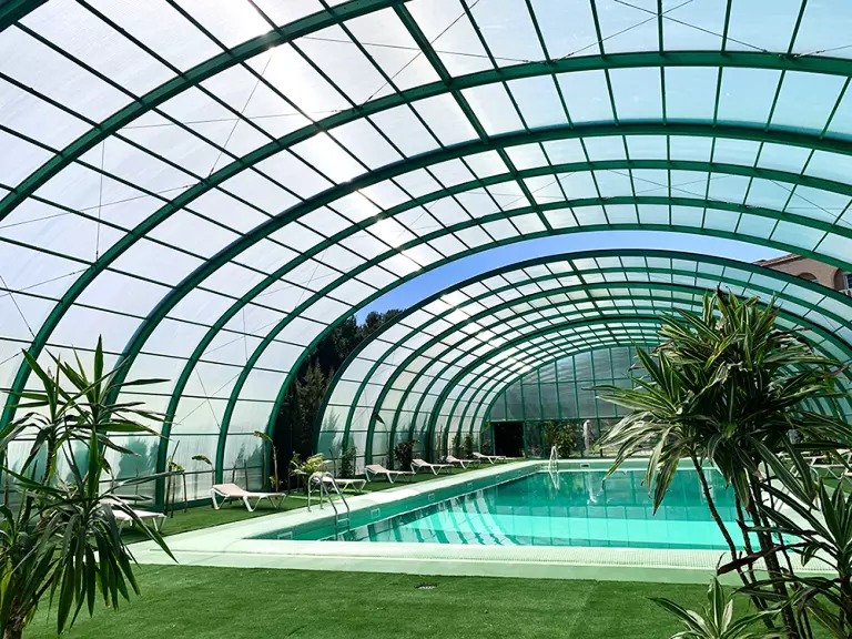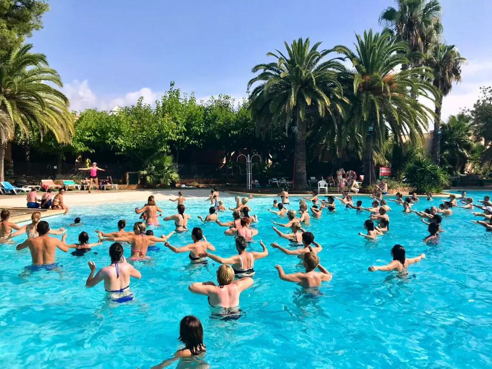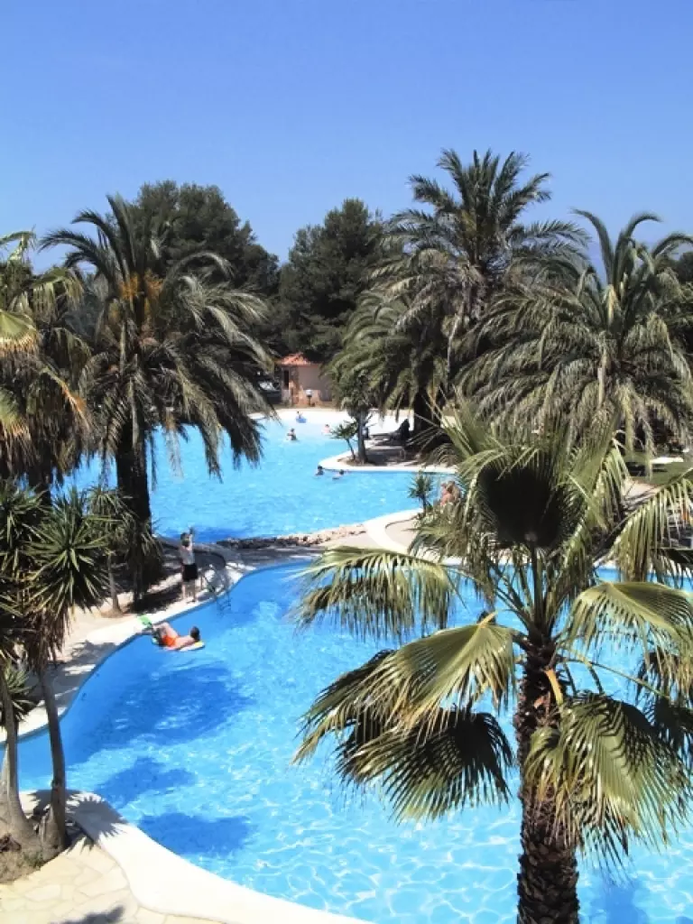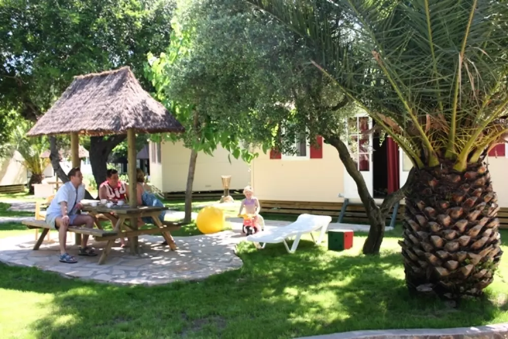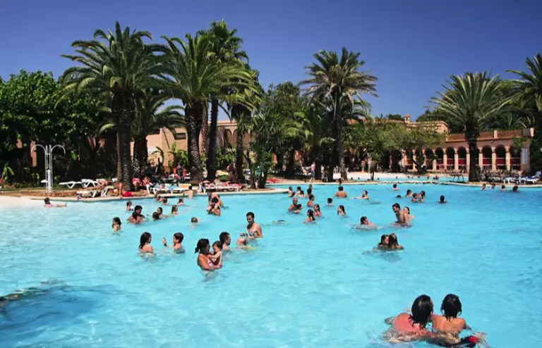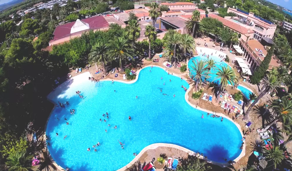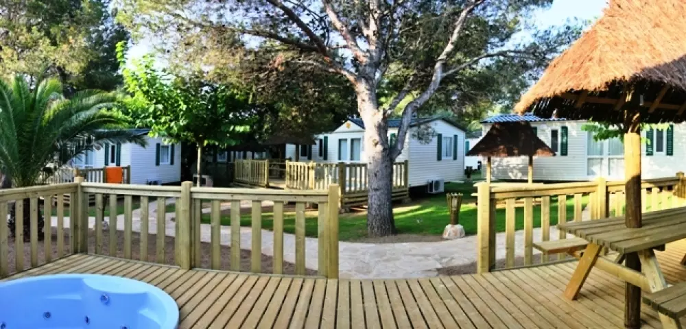 Camping Bungalow Wellness Resort avec une surface de de 24 ha de végétation méditerranéenne et zone tropicale dense et plus d' 1 km de plage de sable fin. Sanitaires grand luxe avec installations de qualité. Tous les services, 3 piscines Lagon Polynésienne, jacuzzi géant et animations continues pendant toute la saison. Espace wellness tropical en plein air.