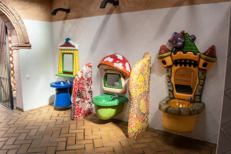 * sanitaires de luxe impécables avec eau chaude à chaque point. Cabines pour bébés. Sanitaires pour personnes handicapées.
