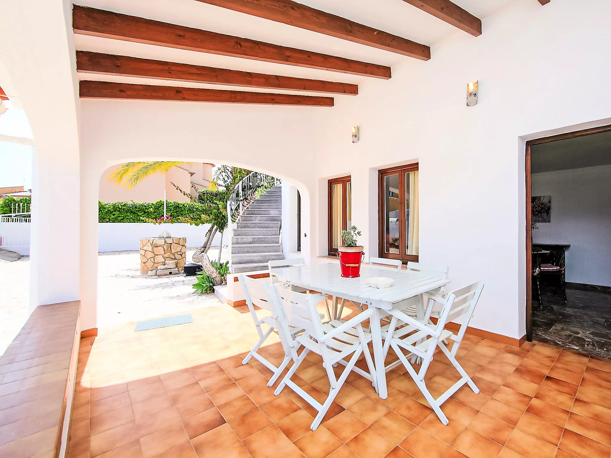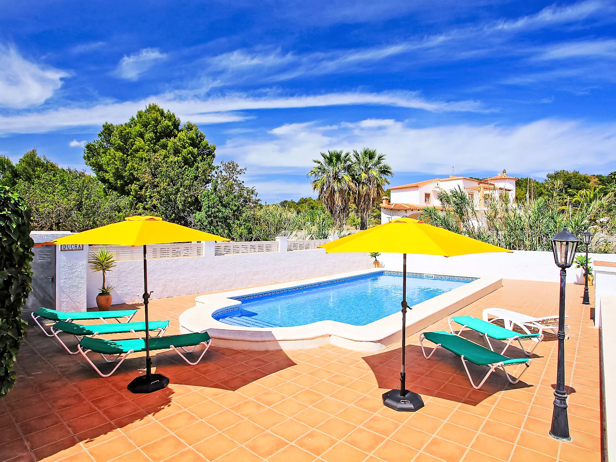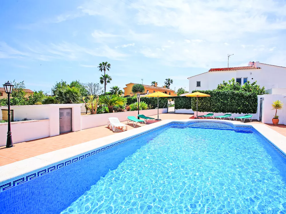 Buenavista à 3 km de Calpe: Grande villa simple, confortable "Campos", de 2 étages. À 3 km du centre de Calpe, dans l'arrondissement Buenavista, situation tranquille, ensoleillée quartier résidentiel, à 950 m de la mer, à, de la plage, dans la verdure. A usage privé: terrain 1'000 m2 (clôturé), jardin propice à la détente, piscine protégée, cloturée (5 x 9 m, disponibilité saisonnière: 01.Jan. - 31.Dec.) avec marches intérieures. Douche extérieure, pool house, terrasse, meubles de jardin, barbecue, espace barbecue. Infrastructures de la Maison: lave-linge. Place de parking sur le terrain. Magasins 900 m, magasin d'alimentation, supermarché 900 m, restaurant, bar 300 m, boulangerie 300 m, café 300 m, zone piétonne 100 m, biergarten 350 m, arrêt de bus "Bus Local" 400 m, plage de sable "Playa de la fossa" 950 m. Port plaisance 2.4 km, marina 2.4 km, terrain de golf (9 trous) 10.4 km, ecole de surf 2.4 km, ecole de voile 2.4 km, piste cyclable 30 m. Attractions à proximité: Aqualandia - Mundomar 28 km, Terra Mítica - Terra Natura 29 km, Benidorm Palace 25 km. Région de randonnées: Peñon d'Ifach 3.1 km. Veuillez noter: adapté(e) aux familles, indiqué pour séniors. Le propriétaire n'accepte pas les groupes de jeunes.