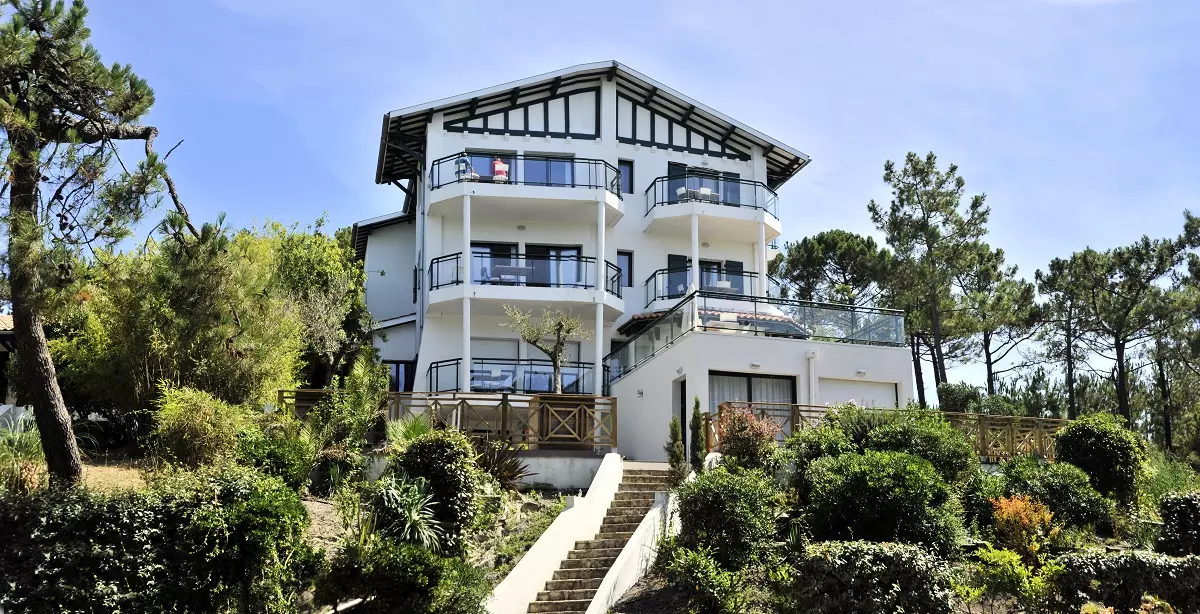 Juchée à la pointe de la Corniche du Pyla sur Mer et à quelques pas d'une plage, la Résidence Oyana surplombe avec élégance le Banc d'Arguin, les passes du Bassin d'Arcachon et trouve, en point de mire, le magnifique phare du Cap Ferret. De pur style architectural basque, cette résidence s'harmonise idéalement avec la nature qui l'entoure.
