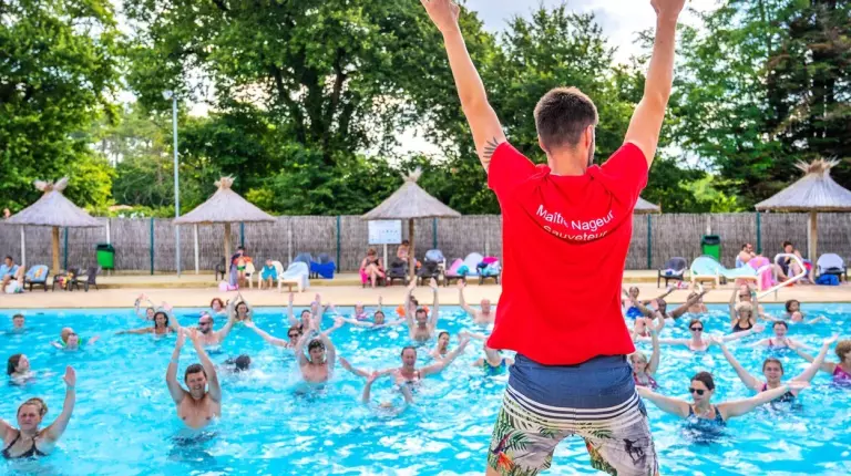 Profitez de l'espace aquatique avec sa piscine couverte chauffée, ses 2 piscines extérieures chauffées en juillet et août, ses toboggans aquatiques et une pataugeoire pour les plus petits. Les enfants pourront s'amuser à l'aire de jeux avec son château gonflable et ses balançoires. Ne manquez pas de participer en famille aux animations proposées en été : soirées à thèmes, aquagym, etc. Détendez-vous en toute tranquillité à l'espace bien-être : hammam, sauna, bain à remous et massages.