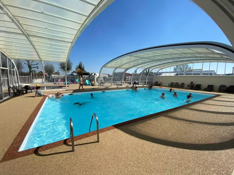 Une fois que vos bambins auront pleinement profité de la baignade, ils pourront également venir s'amuser au club enfants. Du Dimanche au vendredi, notre animateur propose de multiples activités et loisirs pour que les enfants puissent s'amuser. L'occasion idéale de se faire de nouveaux copains ! Le Mister flower club sera ouvert selon le programme de l'animation et accueillera vos enfants de 6 à 12 ans. Venez rencontrer mister flower et Dino, les mascottes du camping, et faire des photos souvenirs ! L'aire de jeux est le terrain privilégié des petits bouts ! Toboggan, jeux sur ressorts, trampoline ou même balançoire… Il y en a pour tous les goûts. De plus un château gonflable sera installé de mi-avril à fin aout sur un espace qui lui sera dédié. Profitez des activités proposées par le camping en juillet/août : En journée : Ping-pong Pétanque jeux piscine tir à l'arc En soirée : Repas à thème Soirée dansante Karaoké Pétanque Concert La piscine couverte Venez vous détendre, vous amuser et profiter du bon air de la Vendée au Camping*** Le Pré des Sables à l'Aiguillon sur Mer. Profitez d'un agréable moment sous le soleil de Vendée en famille ou entre amis en nageant quelques longueurs dans la piscine du camping. A partir de mi-avril jusqu'à mi-septembre de 10h à 20h, notre piscine couverte de 13x9m et de 0,80 à 1,80m de profondeur, vous permet de passer un moment de détente. Aux beaux jours, la piscine se découvre pour laisser entrer les rayons du soleil. Tout proche du dôme, une pataugeoire de 0,30m de profondeur, permet aux jeunes enfants de barboter en toute sécurité sous l'œil bienveillant de papa et maman. Pendant que vos enfants s'amusent dans la piscine ou la pataugeoire, relaxez-vous en bronzant sur les transats mis à votre disposition. Notez que le short de bain est interdit et que le maillot de bain est obligatoire. Les enfants voulant profiter de la piscine doivent être accompagnés obligatoirement d'un adulte car elle est non-surveillée.