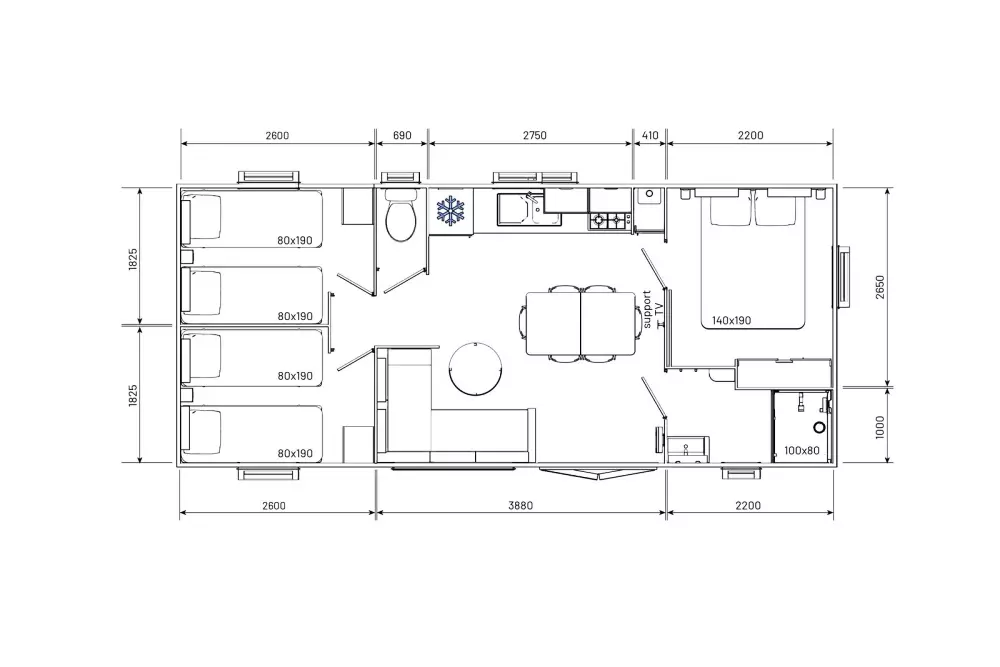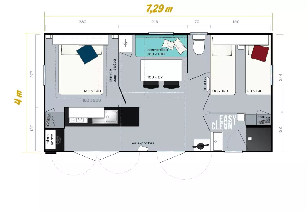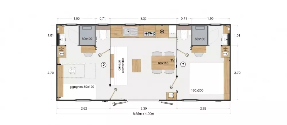 - Forfait ménage final : en option - 80€/logement - à régler sur place