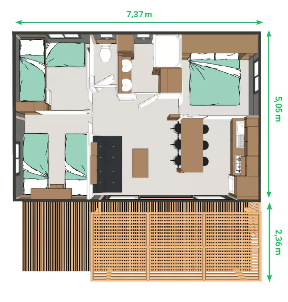 - Blocs sanitaires communs : 2