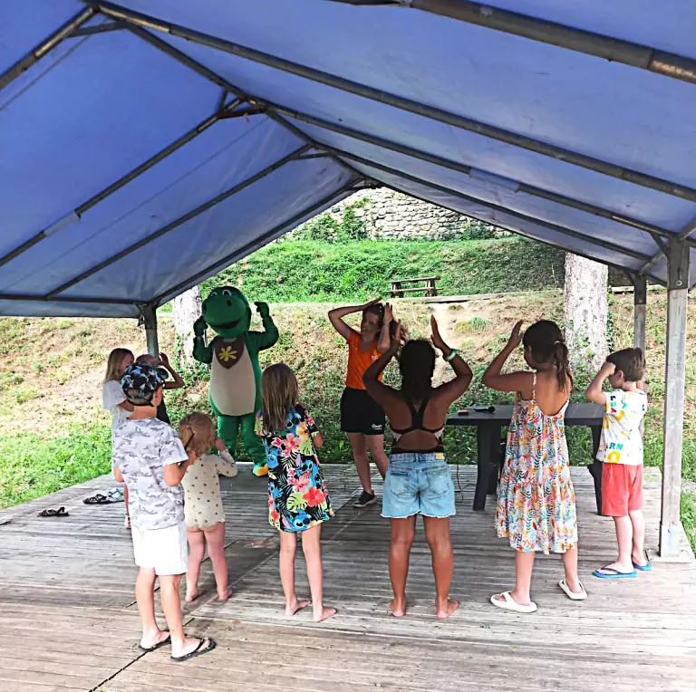 Pain le matin, restaurant à thèmes , pierrades sur réservation, plats à emporter pizzas, randonnées pédestres, VTT, location de vélos, Volley-ball, jeu de boules, farniente au bord de la piscine ou sur la plage, ping-pong, baby-foot, billard, jeux électroniques, soirées à thèmes, (23h00h maximum) animation enfants de 4 à 12 ans