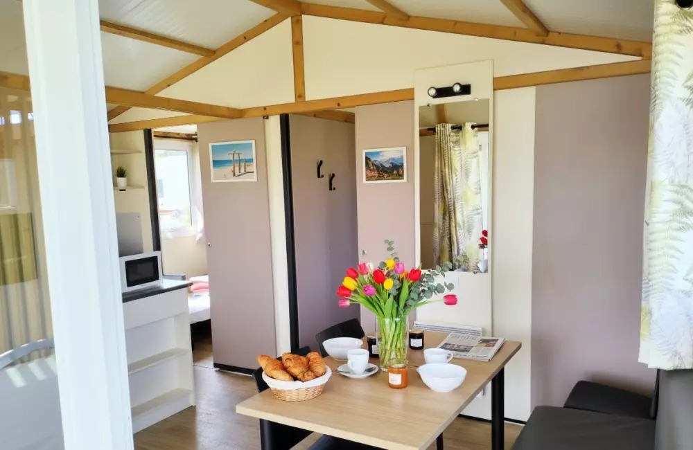Locations de mobil'homes, chalets, caravane, roulotte et un mobil'home pour personne à mobilité réduite.