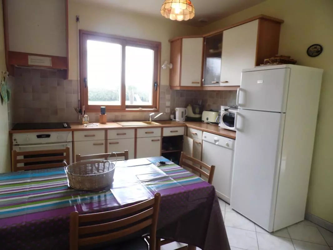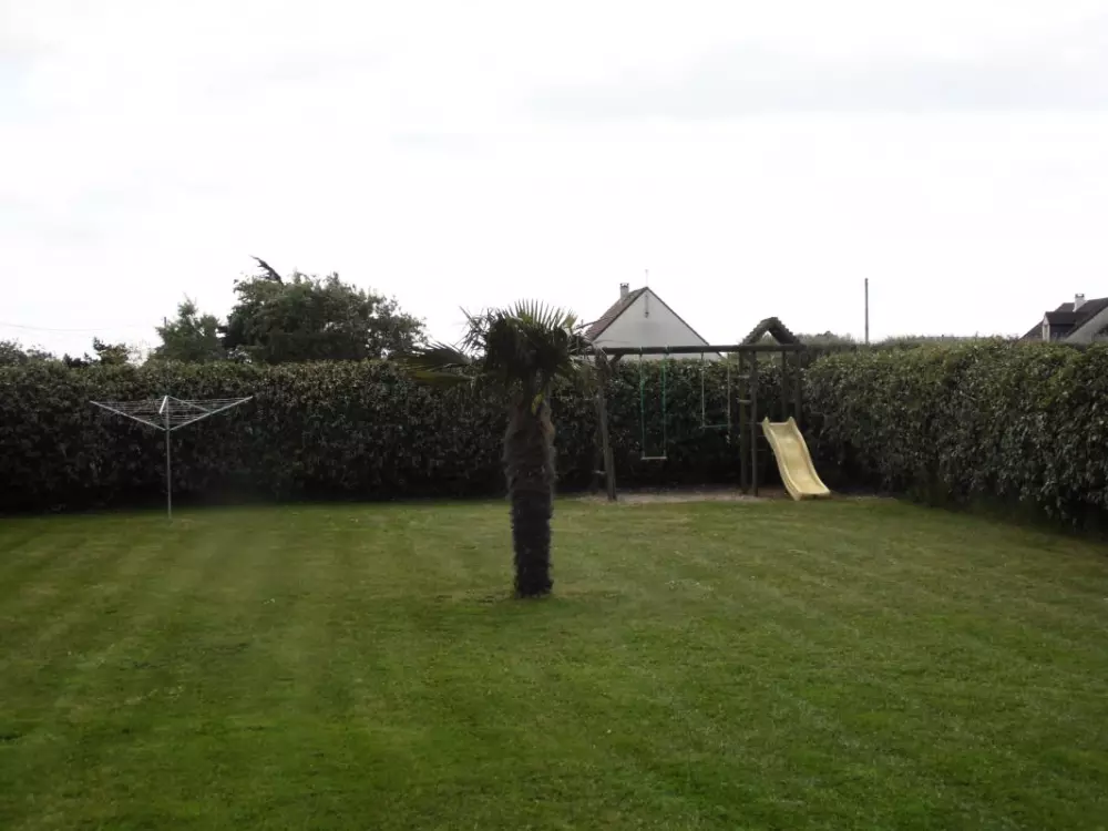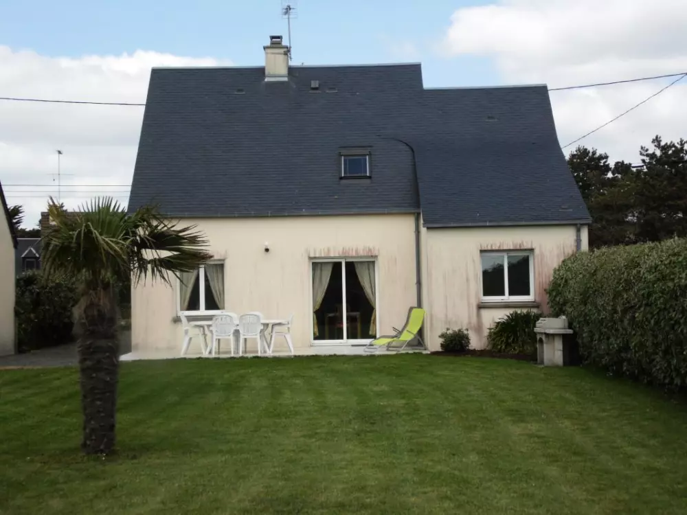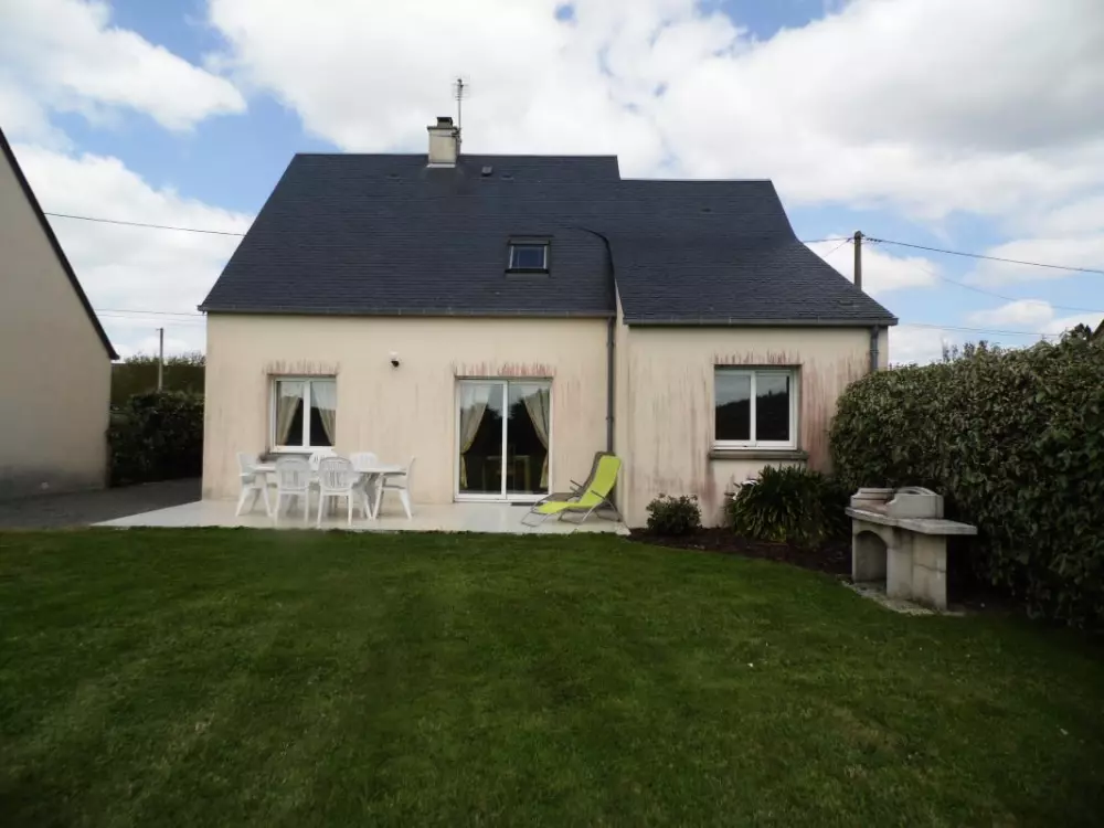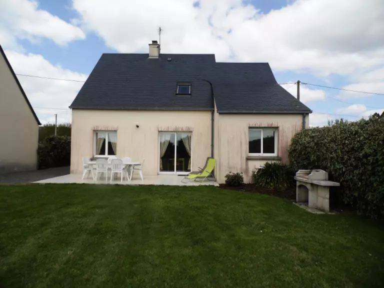 Maison indépendante. Séjour. Cuisine. Chambre 1 : 1 lit 140. CH 2 : 1 lit 140. CH 3 : 1 lit 140. 1 lit bébé. 2 salles d'eau. 2 wc. TV. Lave-linge. Lave-vaisselle. Draps en location. Service ménage en supp. Accès internet. Chauffage électrique en supp. Terrain clos privé. Terrasse. Salon de jardin. Barbecue. Portique. Garage. Meublé situé à 100 m de la plage, à moins d'une heure des plages du Débarquement et à 85 km du Mont-St-Michel.