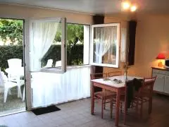 Maison mitoyenne. Séjour. Coin-cuisine. Chambre 1 : 1 lit 140. CH 2 : 2 lits 90. 1 canapé convertible. Salle d'eau. Wc. TV. Lave-linge et sèche-linge communs (payant). Equipement bébé sur demande.Draps en location. Service ménage. Chauffage électrique en supp. Terrain clos commun. Terrasse. Salon de jardin. Barbecue collectif. Terrain de pétanque. Parking. Village de 5 gîtes mitoyens plus un gîte de groupes à proximité, abri pour vélos, idéalement situé à quelques mètres de la plage et de l'école de voile dans une station balnéaire conviviale et familiale. Commerces et restaurants à proximité, marché à 500m tous les dimanches.
