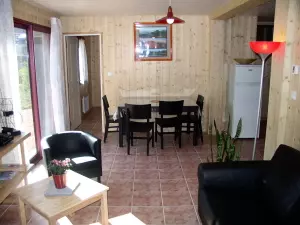 Situé au coeur de la station thermale du Mt-Dore, offrant une vue dominante et panoramique sur la station et la montagne environnante, à moins de 10mn à pied de tous commerces et services, cet appartement neuf aménagé en 2009 est au rez-de-jardin de la maison des propriétaires, avec vaste terrasse et jardin fleuri non clos. La location meublée se compose d'une salle de séjour avec cuisine américaine integrée et coin salon (TV écran plat), 1 chambre (1 lit 160X200) et 1 chambre (2 lits 90x200), une salle d'eau et un wc. De vaste rangements et un rangement à skis. Chauffage éléctrique compris. Commerces et services à proximité immédiate.