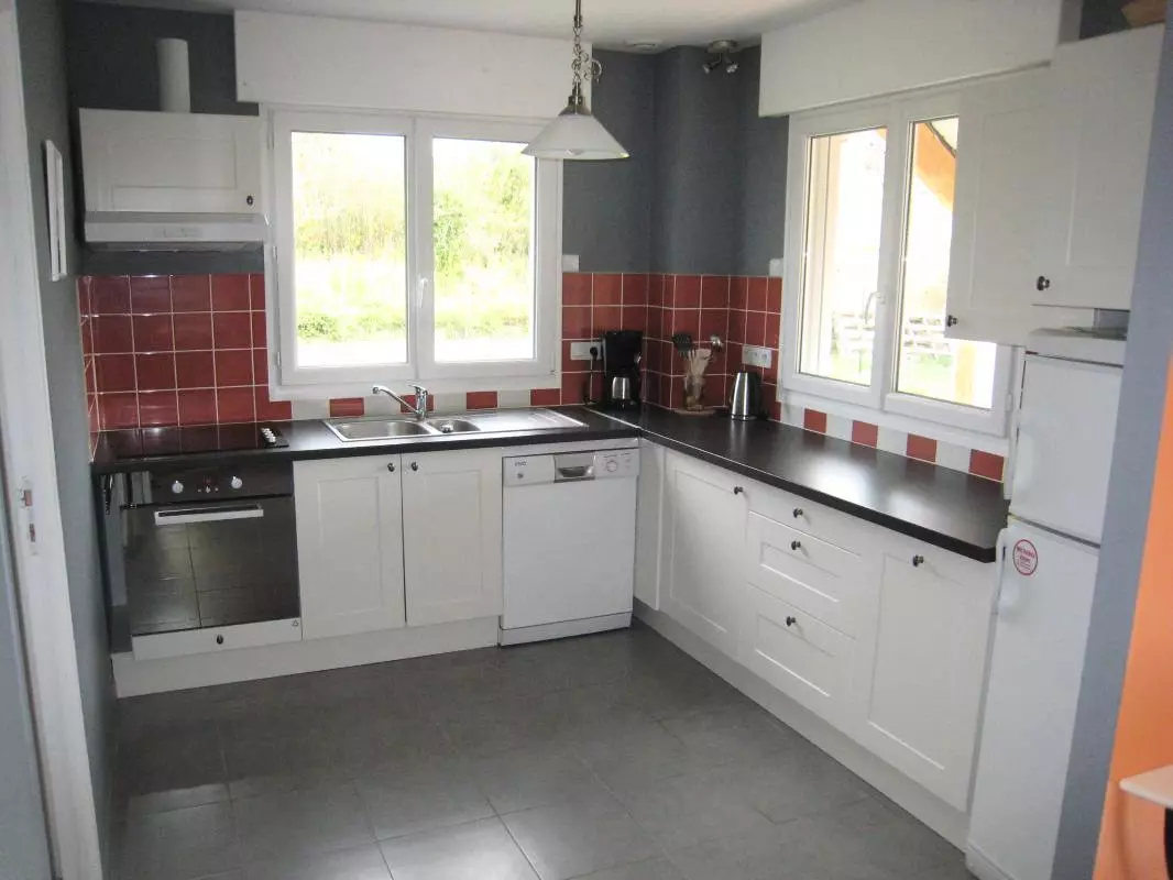 Détail du logement : Séjour coin cuisine. Canapé convertible. 1 chambre (1 lit 140). 1 chambre (1 lit 90) + banquette 1pl convertible. 1 lit bébé + chaise. Salle de bains, douche au rez de chaussée. 2 wc. Terrasse bordée de plantations. Salon de jardin, transats et barbecue. Abri. Chauffage électrique en supp. Draps et linge de maison en location. Service ménage en supp. Séjournez dans cette agréable maison indépendante à ossature bois nichée au sein d'un hameau tranquille à 3km de Carteret. Vous apprécierez la terrasse bien exposée pour partie semi couverte et profiterez du grand jardin clos privatif.
