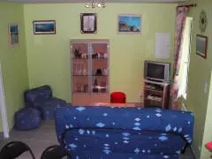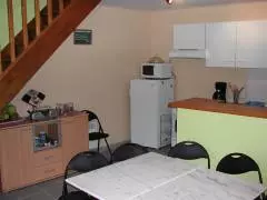 Maison mitoyenne à une autre location. Séjour. Coin-cuisine. 2 chambres. 1 lit de 140 cm. 2 lits de 90 cm. 1 lit bébé. Salle d'eau. WC. Lave-linge. TV. Lecteur DVD. Wifi. Draps et linge de maison en location. Service ménage en supp. Chauffage électrique en supp. Terrain clos commun. Table de pique-nique. Barbecue. Terrain de pétanque. Portique. Un hameau de campagne bien tranquille non loin des plages de sable. 2 meublés aménagés dans le prolongement de la maison des propriétaires. Parcours rando sur la commune.