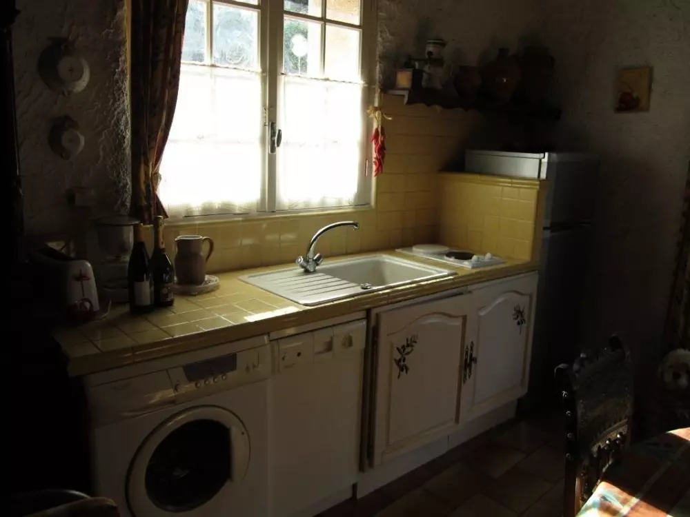 Séjour-cuisine(Lave Linge,Lave Vaisselle, Micro- ondes, TV) canapé avec cheminée (bois fourni). Chauffage électrique en sus (20E/semaine). En mezzanine : 1 lit 2 personnes. Salle d'eau-wc. Gîte situé dans un petit village des Corbières, terrasse de 20m² avec salon de jardin et barbecue. Parking. Le gîte est à 45mn des plages, sur la route des Châteaux du Pays Cathare et des Abbayes. Nombreuses promenades pédestres et VTT autours du village. Gite proche du clocher du village.