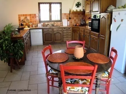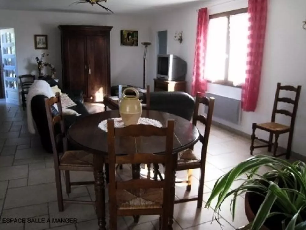 Entièrement de plain-pieds, avec un grand séjour-cuisine bar avec LV, le gîte donne sur une grande cour terrasse. 2 chambres avec 1 lit 2 pers et 2 lits 1 pers, 1 lit bébé. Salle d'eau avec lave-linge. WC ind. Chauffage électrique inclus. Garage. Gîte situé sur un petit mamelon, contre un ancien moulin farinier, avec un terrain attenant privatif, salon de jardin et barbecue. Le massif de la Malepère est à 2 kms, idéal pour faire des balades pédestres et VTT. Proximité de la D119 pouvant entrainer quelques nuisances sonores.