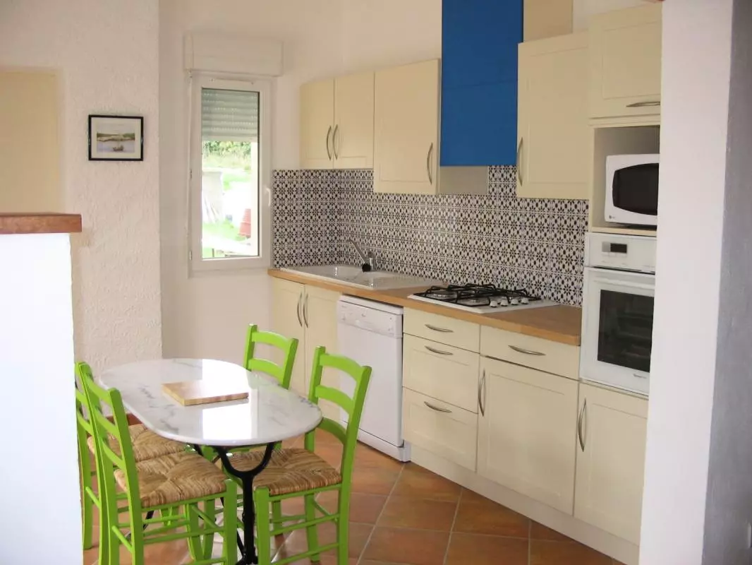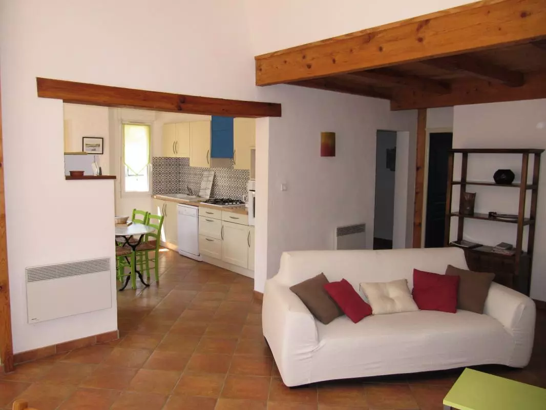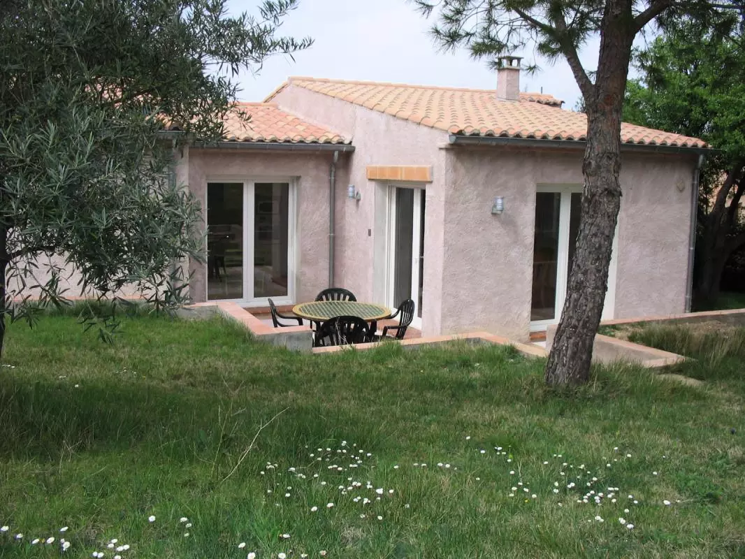 De plain-pieds: grand séjour-cuisine toute équipée avec un coin nuit(2 lits 1 pers). 1 chambre avec 1 lit 2 pers. Salle d'eau. WC indep. Chauffage électrique en sus. Gîte situé dans un petit hameau aux portes de Narbonne, sur un domaine privé, donnant directement sur la garrigue où de nombreuses promenades sont possibles. A 2kms de l'étang de Bages (petit village de pêcheurs), en plein coeur du Parc naturel de la Narbonnaise, et à 15kms des plages de la Méditérrannée. Terrasse privative ainsi qu'un jardin(env.400m2).
