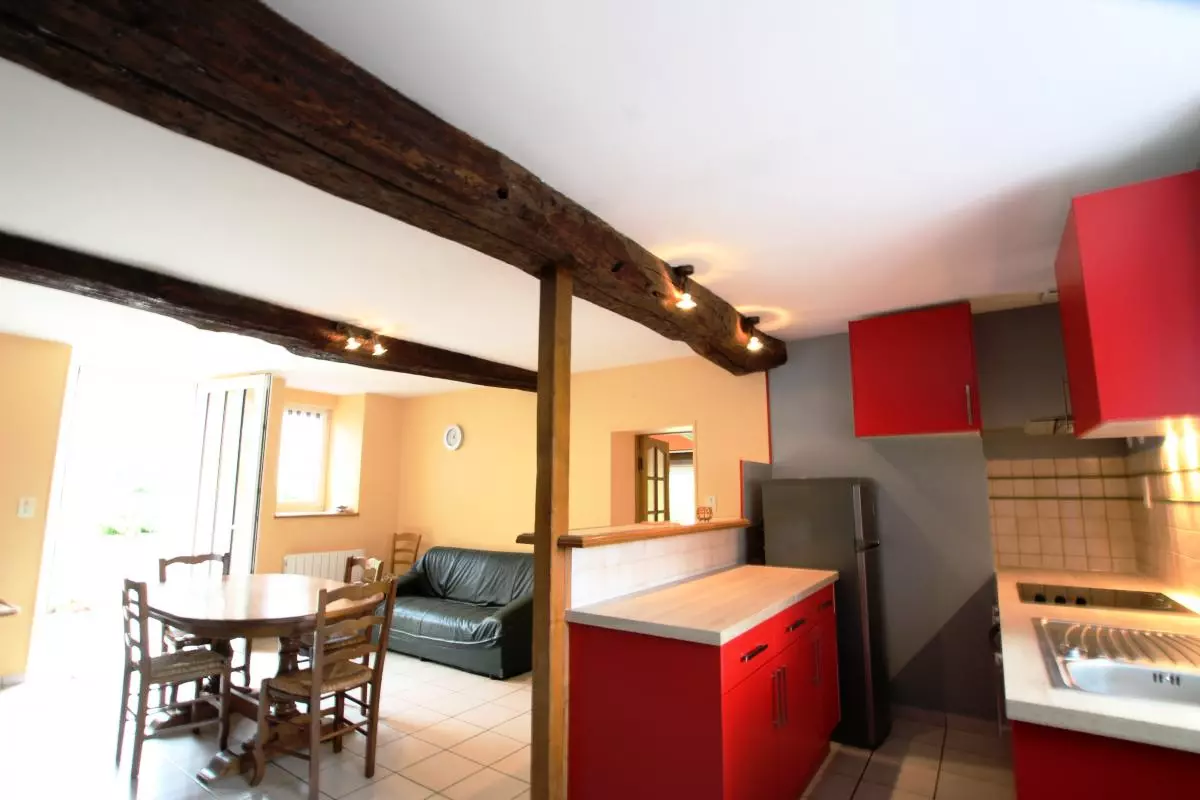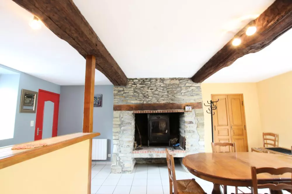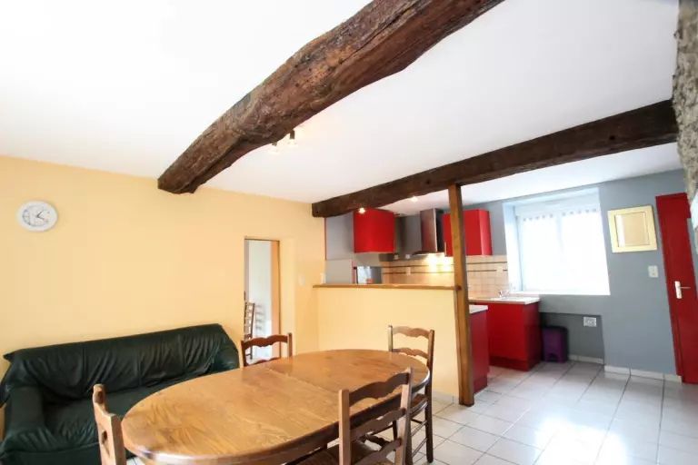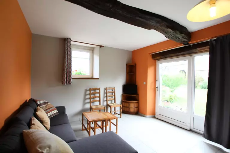 Maison indépendante. Séjour. Coin-cuisine (lave-vaisselle, four, micro-ondes). Salon avec TV. A l'étage, Ch 1 : 1 lit 160. Ch 2 : 2 lits 90. 1 canapé convertible. Salle d'eau. Wc au rdc et à l'étage. Poêle à bois. Lave-linge. Draps et linge de maison non fournis. Chauffage électrique en supp. Terrain non clos commun. Salon de jardin. Jolie rénovation dans une ancienne ferme au Sud de Saint Lô. Possibilité de promenades sur les chemins de halage le long de la Vire.