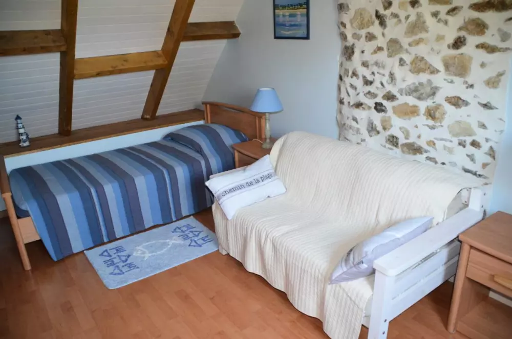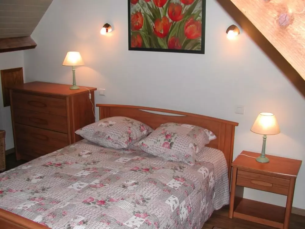 Maison mitoy.à une location. Séjour avec cheminée, TV, DVD. Cuisine américaine, lave vaisselle. Salle d'eau ,lave linge. WC. CH 1 : 1 lit 140. CH 2 : 2 lits 90 + 1 lit tiroir 90. Lit bébé-chaise haute sur demande. Draps en location. Service ménage en supplément. Toutes charges comprises.Terrasse privative. Salon de jardin. Transat. Barbecue. Terrain non clos privé. Parking. Location vélos : 15?/personne. (selon disponibilités) 2 gîtes ont été soigneusement aménagés dans cette charmante longère nichée dans la verte campagne. La Trémaillerie est un de ces lieux priviligiés où le temps semble parfois s'arrêter! Randonnées possibles depuis le gîte à travers les chemins creux et plage toute proche.
