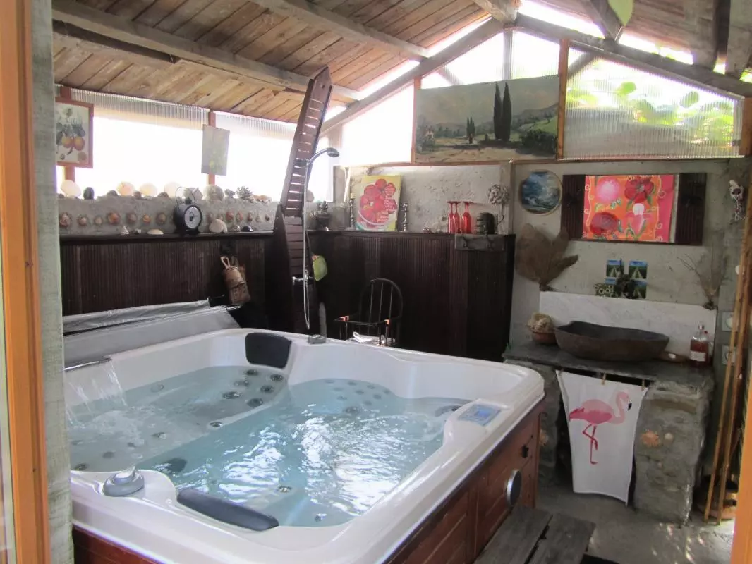 Grand séjour-cuisine, salle à manger, coin feu, WC independant. 1 Chambre avec Salle d'eau-WC (2 lits 1 pers). A l'étage communiquant avec le jardin, 1 chambre avec Salle d'eau-wc (2 lits 1 pers), coin salon. Chauffage en sus climatisation reversible, gite non fumeurs. Parking privé. Jacuzzi du propriétaire à disposition 35mn/j. En sous sol petite salle de remise en forme avec Lave Linge et Sèche Linge. Au coeur du Pays Cathare gîte de caractère, dans le paisible hameau de Saint Sernin à 5 kms de Bouriège dans un environnement calme et relaxant de vignobles en coteaux de l'appellation Blanquette de Limoux. Belles vues depuis le gîte sur des paysages préservés propices aux balades VTT ou pédestres. Jardin de 100 m² attenant (avec plancha) et parking. Vous avez accès a un emplacement champêtre, avec vue sur les Pyrénées, incitant à la détente et à la relaxation Découverte du terroir et dégustation chez les producteurs locaux.