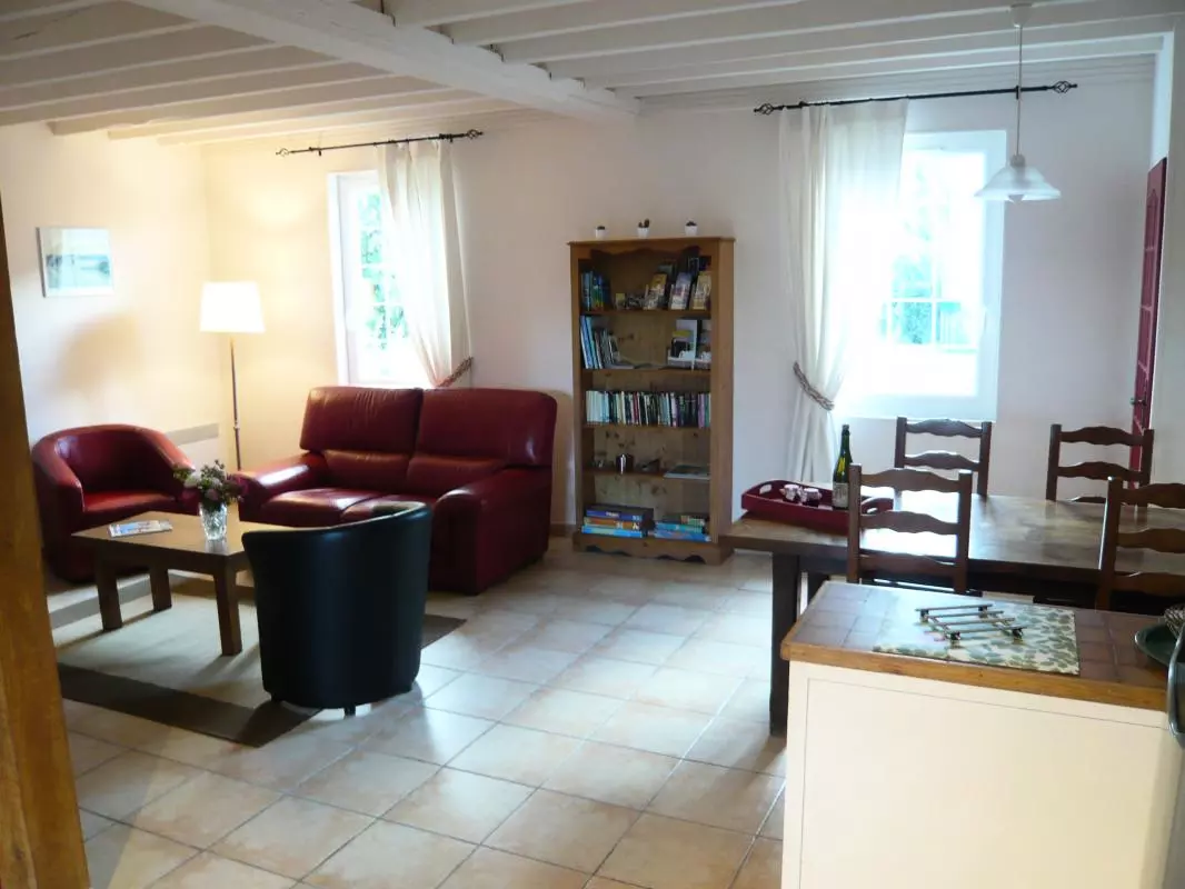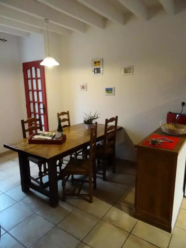 Maison indépendante. Séjour avec coin-cuisine. wc. Salle d'eau. A l'étage: chambre 1 (1 lit 160) chambre 2 (2 lits 90). TV. Lecteur DVD. Internet WIFI. Lave-linge. Lave-vaisselle. Draps fournis et lits faits à l'arrivée. Linge de maison en location. Service ménage de fin de séjour. Chauffage électrique en supplément. Terrain clos privé. Salon de jardin. Barbecue. Portique. Bac à sable. Une immersion au coeur d'un espace naturel unique : la Baie des Veys! Paradis des oiseaux, cet espace préservé est un des hauts lieux du PNR des Marais du Cotentin. Les propriétaires vous accueillent dans un véritable écrin de verdure. Le gîte, à l'écart, permet de profiter pleinement du parc paysager. Plan d'eau sur place. Plage du débarquement (Utah Beach) à 8,5 km.
