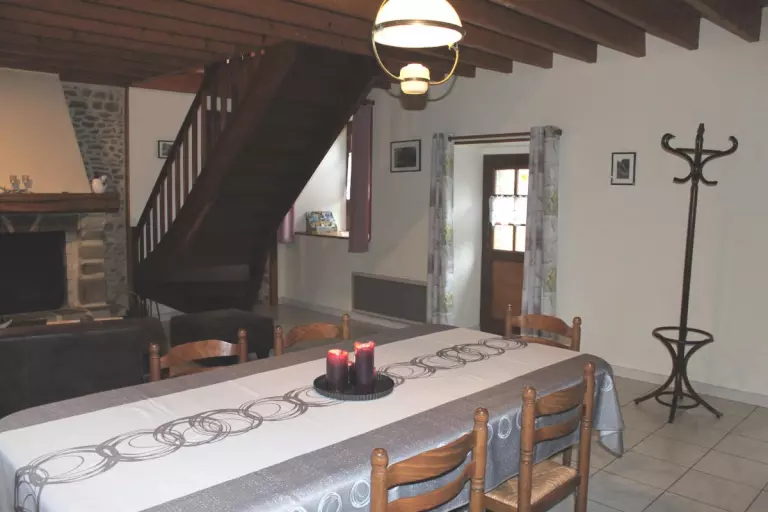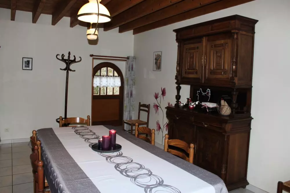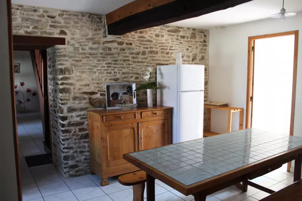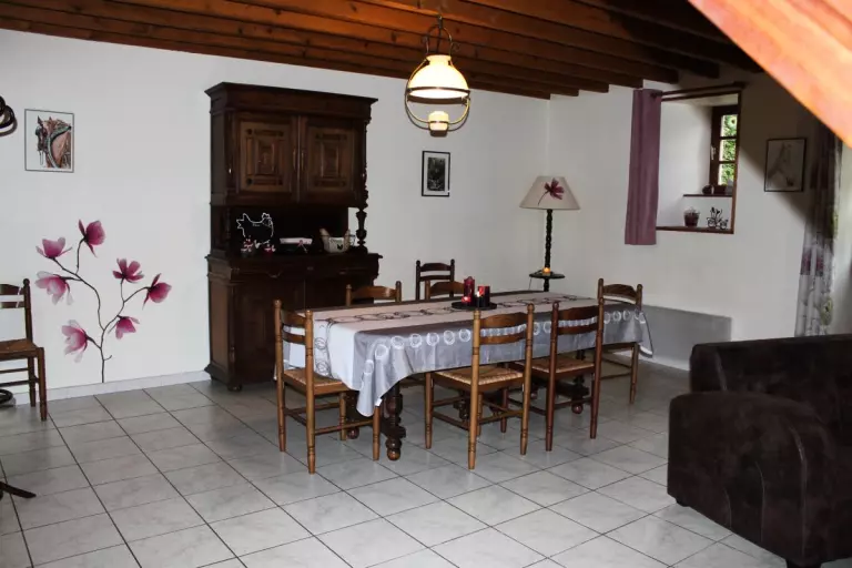 Maison mitoyenne à celle du propriétaire. Séjour. Cuisine. CH1 (1 lit 140). CH2 (1 lit 140). CH3 (1 lit 110 + 2 lits 90 superposés). 1 lit bébé. Salle de bains. Salle d'eau. 2 wc. Cheminée. TV. Lave-linge. Lave-vaisselle. Draps en location. Linge de maison non fourni. Service ménage en supp. Chauffage électrique en supp. Terrain clos privé. Terrasse. Salon de jardin. Barbecue. Garage. A proximité des plages de Portbail, cette façade authentique séduira les amateurs de belles pierres et de hameaux préservés. Un beau verger se situe à l'arrière de la maison. Grand séjour et équipement complet.