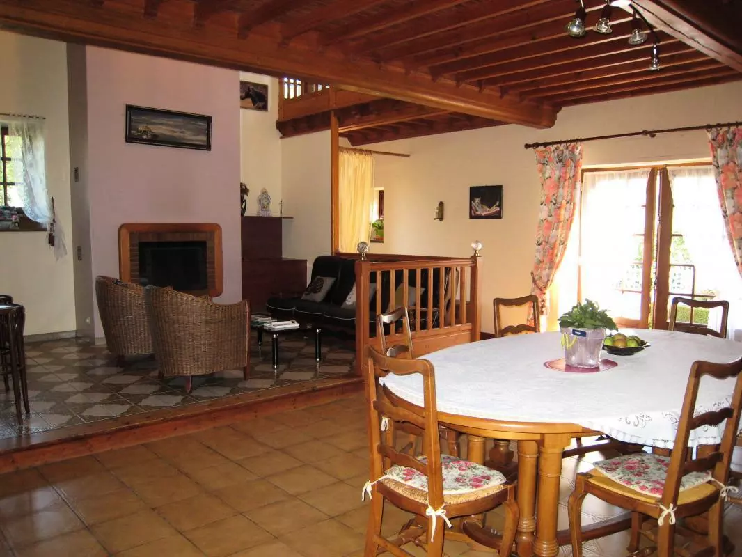 Maison indépendante. Séjour. Cuisine. 1 chambre au rez de chaussée (1 lit 90), 2 chambres à l'étage (2 x 1 lit 140). Salle de bains.2 Wc. Cheminée. TV. Lecteur DVD. Wi-fi. Lave-linge. Sèche-linge. Lave-vaisselle. Draps et linge de maison en location. Chauffage électrique en supp. Terrain clos privé. Terrasses. Salon de jardin. Transats. Barbecue. Bac à sable. Portique. Table de ping-pong. Un agréable jardin arboré avec un espace repas aménagé sous une pergola et même un potager! A l'intérieur, le grand séjour est dominé par une mezzanine distribuant les 2 chambres.