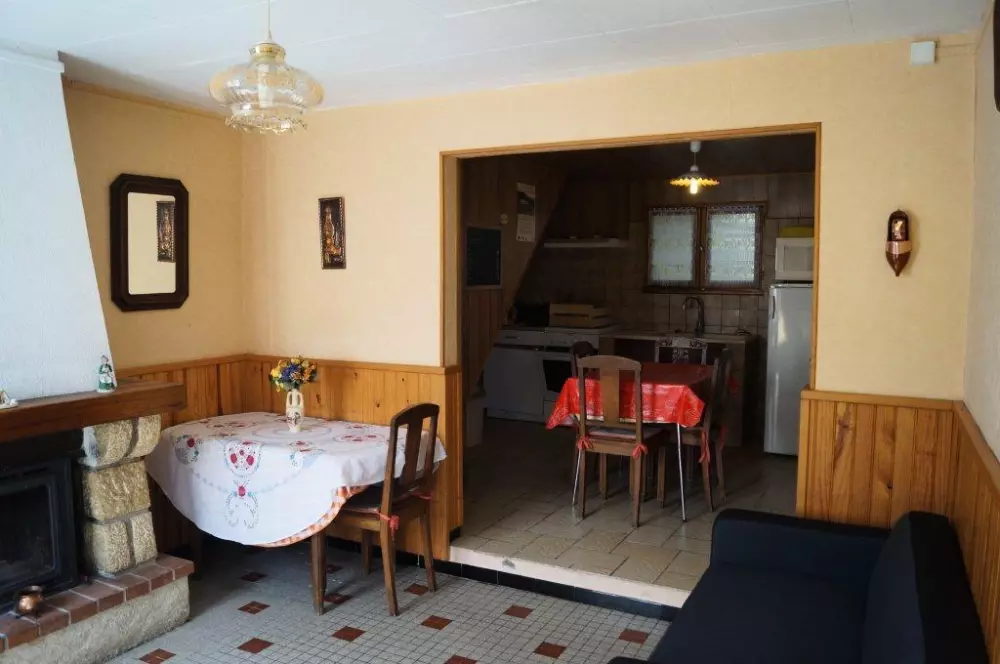 Séjour-cuisine(four Micro-ondes)avec cheminée. 1 chbre (1 lit 2 pers).Salle de bains. WC. A l'étage: 1 chambre(1 lit 2 pers. 1 lit 1 pers.), coin couchage supplémentaire sur le palier (1 lit 1 pers). Taxe de séjour: 0.35?/j/pers. Gîte indépendant aux abords du village situé sur un terrain non clos commun avec le propriétaire. Espace privatif clos avec salon de jardin et barbecue. Espace buanderie avec Lave Linge. Parking.
