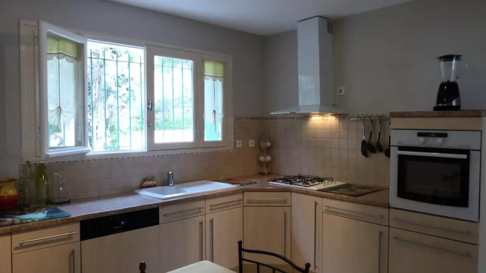 Cuisine, séjour (radio, clic clac). 2 chambres (1 en 160cm et 2 lits en 90 jumelables plus 2 lits en 80 sur demande). Salle d'eau. WC individuel. Chauffage électrique et l'eau en sus si dépassement. Parking dans l'enceinte de la maison. Le gîte est situé dans un environnement de garrigues et de vignobles. La maison est de style régional, indépendante, de plain pied, spacieuse, avec des terrasses autour et de grands espaces (salon de jardin avec plancha électrique, etc...). Il se situe à l'entrée du village sur la route qui vient de Lézignan. Proche des sites cathares, des abbayes, de Carcassonne et des plages.