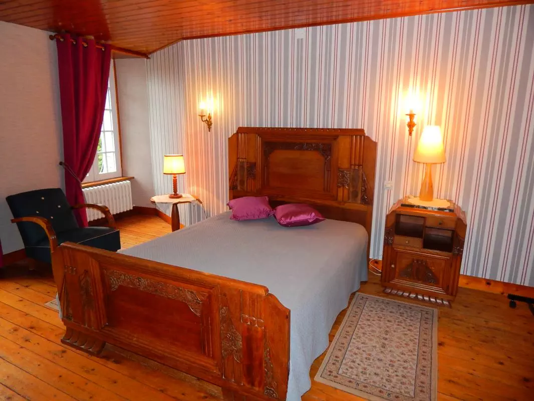 Maison mitoyenne à une habitation. Salon. Salle à manger. Coin-cuisine. CH1: 1 lit 140. 1 lit bébé. CH2: 2 lits 90 et 1 lit pliant. 1 canapé convertible. Salle de bains. 2 wc. Cheminée. Prise TV. Accès internet. Tél. téléséjour. Lave-linge. Lave-vaisselle. Draps et linge de maison non fournis. Chauffage central en supp. Terrain non clos privé. Salon de jardin. Demeure datant du XVIIème siècle et rénovée confortablement en ayant pris soin de respecter les origines du bâtiment. Meubles et ambiance rustiques. Accès au gîte par chemin privé sans issue.