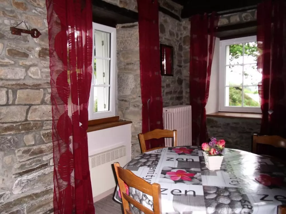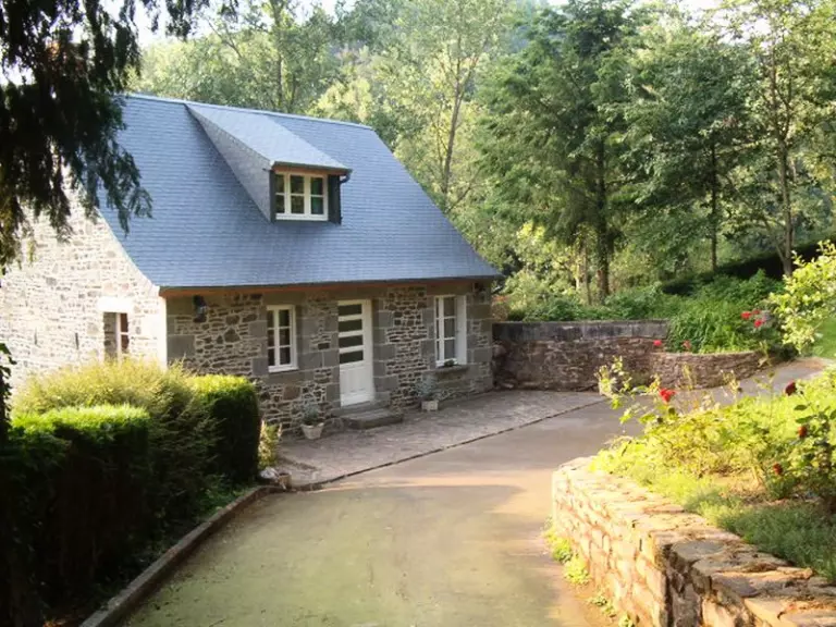 Maison mitoyenne à celle du propriétaire. Séjour avec coin cuisine. 2 chambres. 2 lits 140 et un couchage d'appoint. Salle de bain, salle d'eau. 2 WC. TV, lave-linge, lave-vaisselle. Draps et linge de maison non fournis. Chauffage d'appoint en supp. Pièce supplémentaire avec canapé convertible et salle d'eau. Terrain non clos commun. Terrasse. Salon de jardin. Etang. Dans un cadre boisé et encaissé, petit gîte en pleine nature.