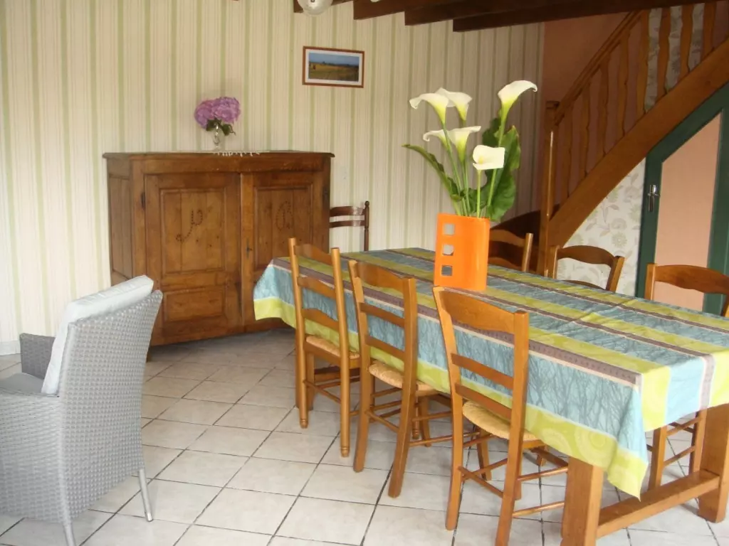 Maison indépendante. Séjour. Coin-cuisine. Ch1 : 1 lit 140. Ch2 : 3 lits 90. 1 lit bébé. Salle de bains. Wc. Cheminée insert. TV. Lave-linge. Lave-vaisselle. Draps et linge de maison non fournis. Chauffage électrique en supp. Terrain clos privé. Salon de jardin. Barbecue. Portique. Garage. Restauration des colombages, fidèle à un certain bâti de la région du sud Manche. Base de loisirs de La Mazure à 4 km.