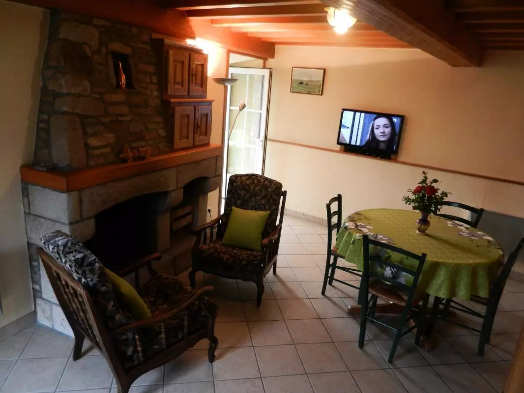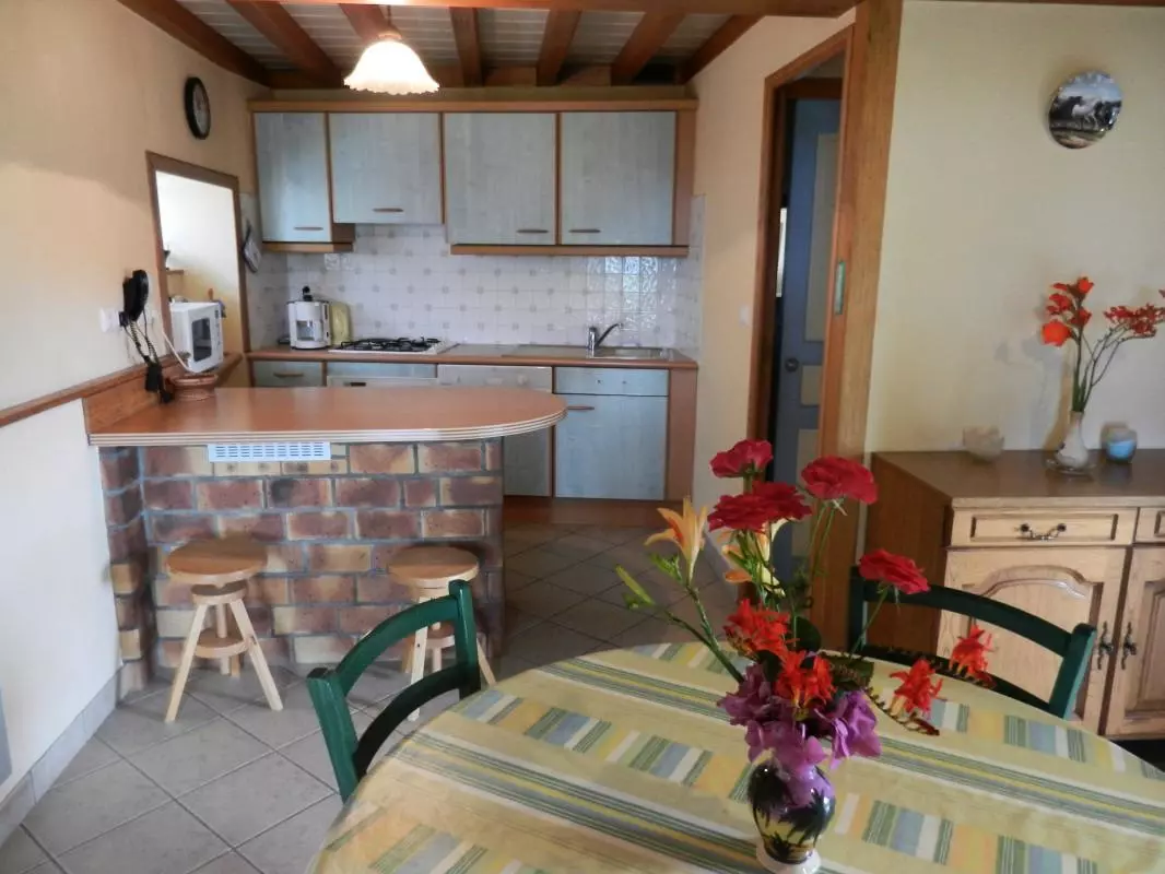 Maison indépendante. Séjour. Coin-cuisine. Véranda. 2 chambres. 1 lit 140. 2 lits 90. 1 lit bébé. Salle d'eau. Wc. Cheminée. TV. Tél. téléséjour. Lave-linge. Lave-vaisselle. Draps en location. Chauffage électrique en supp. Terrain clos privé. Terrasse. Salon de jardin. Barbecue. Portique. Bac à sable. Une adorable petite maison de pierre d'où vous admirerez chaque jour la mer avec l'Ile d'Aurigny. Le dépaysement est garanti dans cette contrée sauvage et maritime.