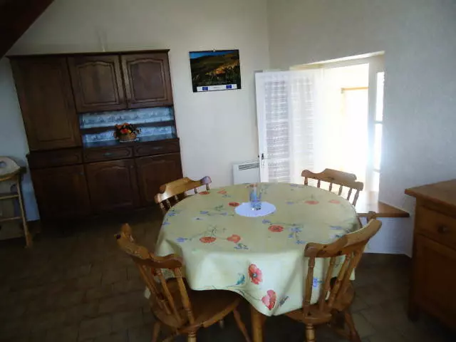 Maison mitoyenne à une autre location. Salon. Séjour. Coin-cuisine. Chambre 1 (1 lit 140). Ch2 (2 lits 90). 1 canapé convertible. Salle de bains. WC. TV. lave-linge. Draps et linge de maison non fournis. Service ménage en supplément. Chauffage électrique en supp. Terrain clos commun. Table pique-nique. Barbecue. Lit bébé. Au coeur d'une petite commune pittoresque du Cotentin, ce petit gîte est aménagé dans l'ancienne école. Il est à proximité des plages.