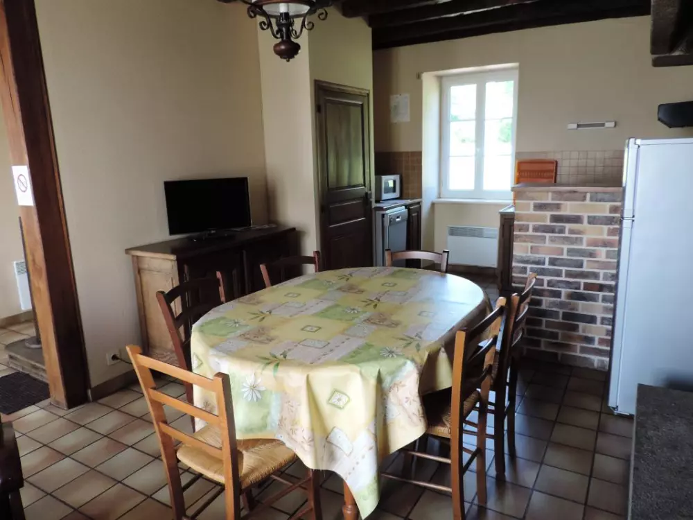 Maison mitoyenne à une autre location. Séjour. Coin-cuisine avec réfrigérateur et case congélateur. Lave-vaisselle. Chambre 1 (1 lit 140). Ch2 (2 lits 90). Salle d'eau. Wc. TV. Lave-linge. Lave-vaisselle. Draps et linge de maison non fournis. Service ménage en supp. Chauffage électrique en supplément. Terrain clos commun. Salon de jardin. Barbecue. Ancien presbytère réaménagé en deux gîtes mitoyens. Commune située entre Villedieu les Poëles et Avranches. 1 commerce sur place proposant restaurant- bar- crêperie et épicerie- dépôt de pain.